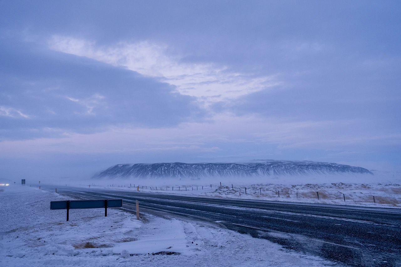 아이슬란드 서쪽에 위치한 수도 레이캬비크에서 남동부의 거점 도시인 회픈으로 가기 위해서는 아이슬란드의 광활한 남부를 지나야 했다. 국토 정중앙에 위치한 웅장한 고원지대 하이랜드가 북쪽으로부터 날아오는 모든 강풍과 악천후 등을 막아주고 있어 겨울에 여행하기엔 비교적 난도가 낮은 곳이기도 했다. 더불어 이 남부는 지난날 첫 번째로 아이슬란드를 방문했을 때 친구들과 이미 방문했던 곳이었다. 그때 방문했던 레이캬비크와 회픈 사이의 약 350km 길을 나는 다시 혼자 달리고 있었다.