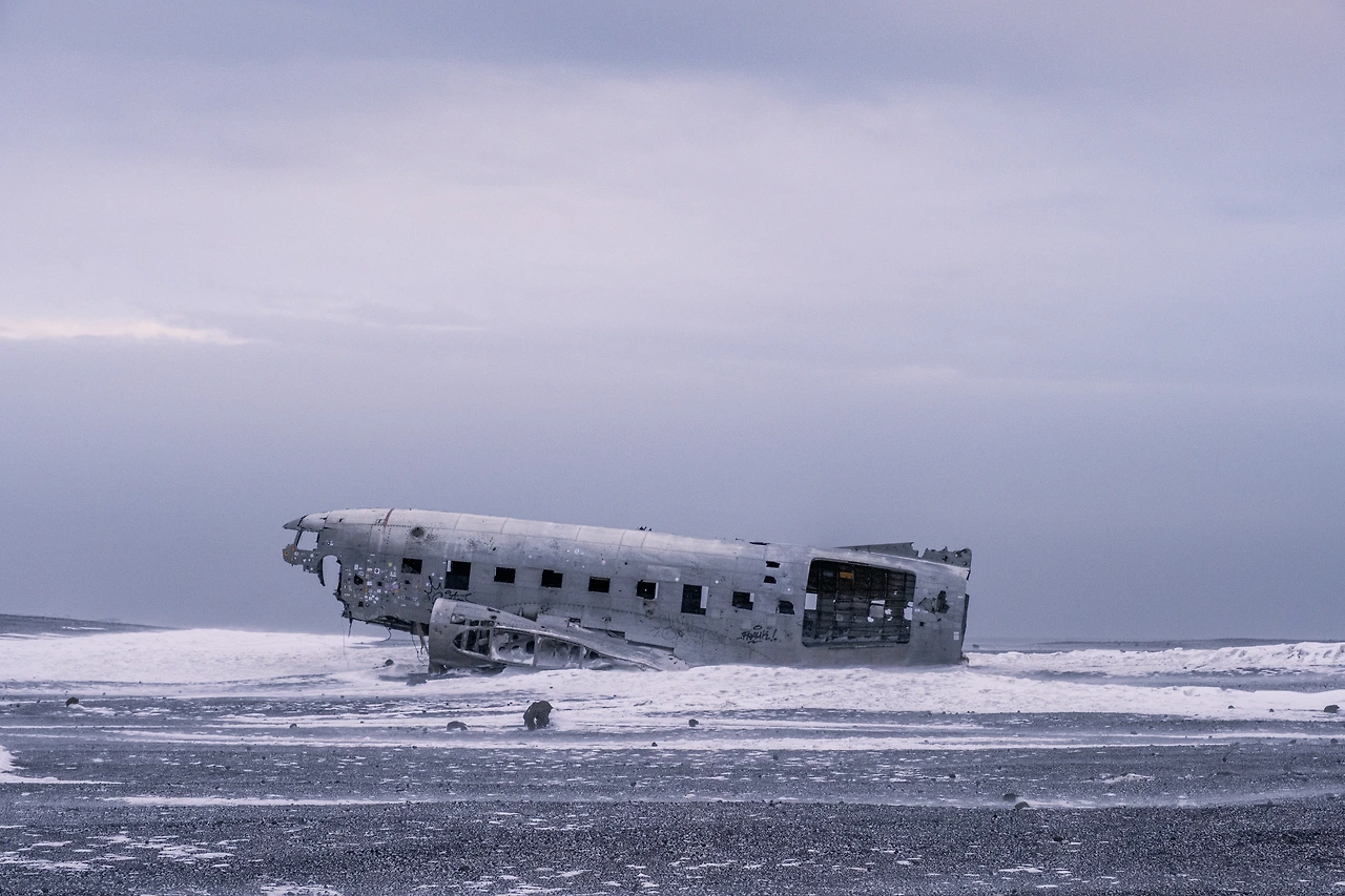 일정 지점을 지나자 더욱더 거세지는 바람을 맞기 시작하면서 더 전진하다가 마침내 비행기 잔해가 보이기 시작했다. 이 추락 당시에 다행히 그 누구도 사망하지는 않았다고 하지만 그 심정이 과연 얼마나 참담했을까 라는 의문을 곱씹어보며 이제는 추억이 많이 미화되어 기록으로 남게 된 사진들을 신중하게 담기 시작했다. 전문 사진가들 중에는 이곳까지 와서 비행기와 함께 오로라를 담는 사람들을 소셜네트워크에서 봤던 기억이 있는데, 정말이지 난 못할 것만 같다. 그들의 열정에 감탄할 수밖에.