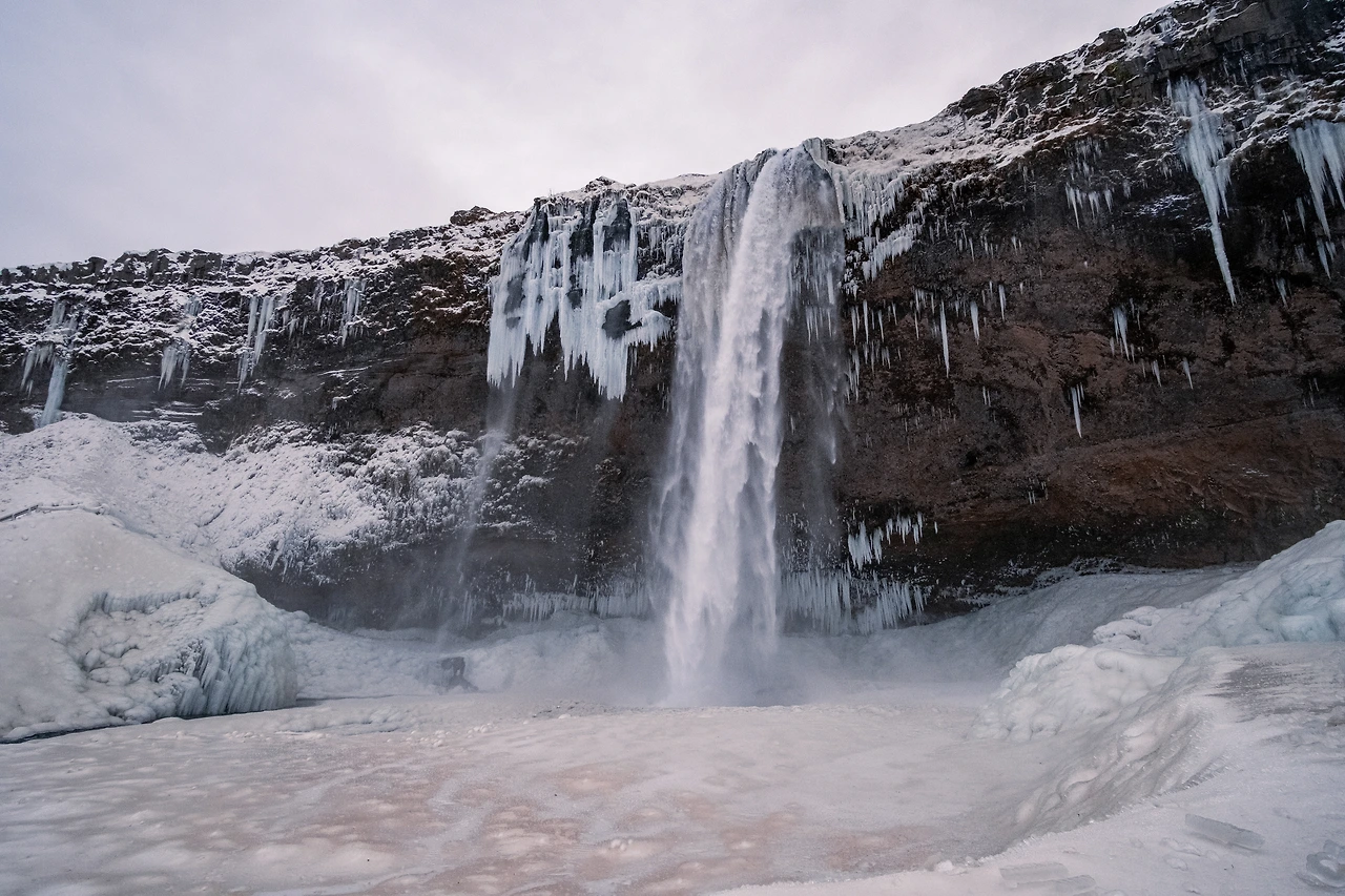 이 셀야란드포스는 꽤나 거대한 폭포로 아이슬란드의 가장 대표적인 폭포 중 하나인데, 폭포의 물줄기 안쪽으로 들어가서 안쪽에서 폭포가 떨어지는 것을 보며 돌아 나올 수 있는 뷰가 정말 압권인 곳이었다. 그렇지만 그 돌아들어가서 나오는 길은 결빙이 심해서 통제가 되어 있었고 폭포의 거대한 물줄기도 모조리 얼어 있었다. 그리고 이 셀야란드포스의 겨울잠을 목도한 순간 나는 통제된 도로에도 끄떡없던 생각의 물줄기가 처음으로 다른 방향으로 틀어지는 것을 느꼈던 것 같다. '이 여행은 정말 쉽지 않을 수도 있겠어.'