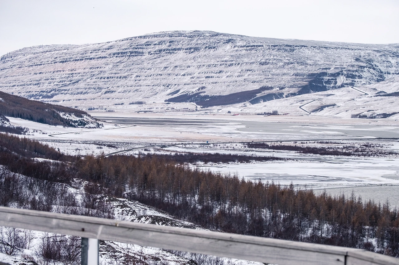 이 강의 존재는 한국에서 떠나오던 시점부터, 그리고 에이일스타디르에 진입한 이후로도 계속해서 멀찍이서 자각하고 있었다. 오로라를 허탕 쳤던 첫날밤과, 세이디스피요르를 넘어오는 고개에서도 제법 멀지 않은 거리 내에 존재하고 있었지만 완연한 만남이 계속 아슬하게 빗나가던 차에 마침내 우리는 마주 섰다.