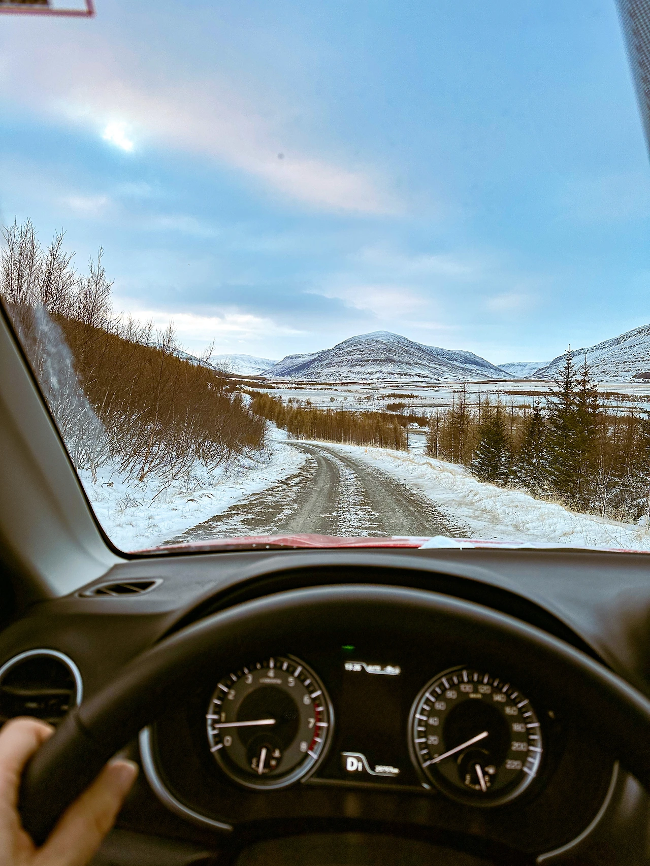 흐르는 강, 그리고 그것을 품고 있는 거대한 산줄기, 겨울의 아이슬란드 동부는 아무도 찾지 않는다는 것을 직접 보여주는 차 한 대 지나가지 않고 있던 이곳의 침묵까지. 남부에서 만났던 마지막 오로라 이후로 아마도 가장 완벽한 무대였다고 그 순간 생각했던 것 같다. 바로 그 순간 예상도 아닌 확신을 했다. '오늘 밤 오로라는 반드시 이곳에서 본다.' 그렇게 혼잣말처럼 되뇌며 잠시 풍경을 응시하며 몇 장의 사진을 더 찍다가 다시 차에 올랐다.