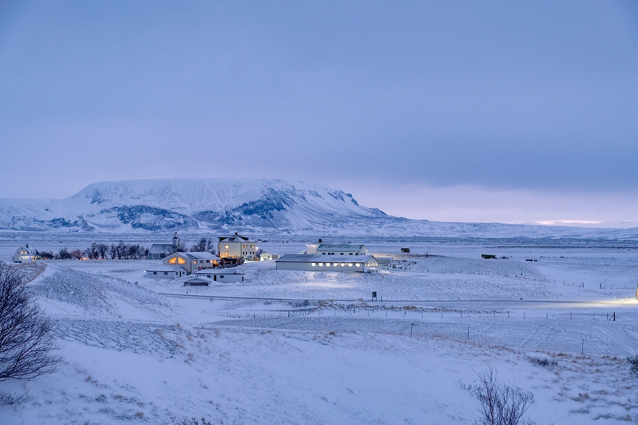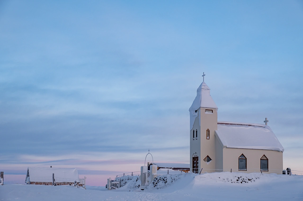 그렇지만 미바튼 호수로 향하던 중간에 가로막힘과 만나지 못한 존재들로부터 느낀 좌절만 있던 것은 아니었다. 잠시 거쳐갔던 뫼드뤼달뤼르(Möðrudalur)라는 장소 역시 지금은 본연의 역할인 캠핑사이트도, 함께 딸려 있는 숙소 역시 영업하고 있지 않은 상태였고 교회를 포함한 모든 건물도 굳게 닫혀 있었지만, 흰 눈에 뒤덮인 채 분홍빛으로 물들던 하늘과 어우러진 마을은 그 자체로도 너무나 아름다웠다. 무언가를 할 수는 없었지만 그 존재만으로도 분명 신비로움과 아름다움을 물씬 발산하는 모습은 매료되기에 충분했다.
