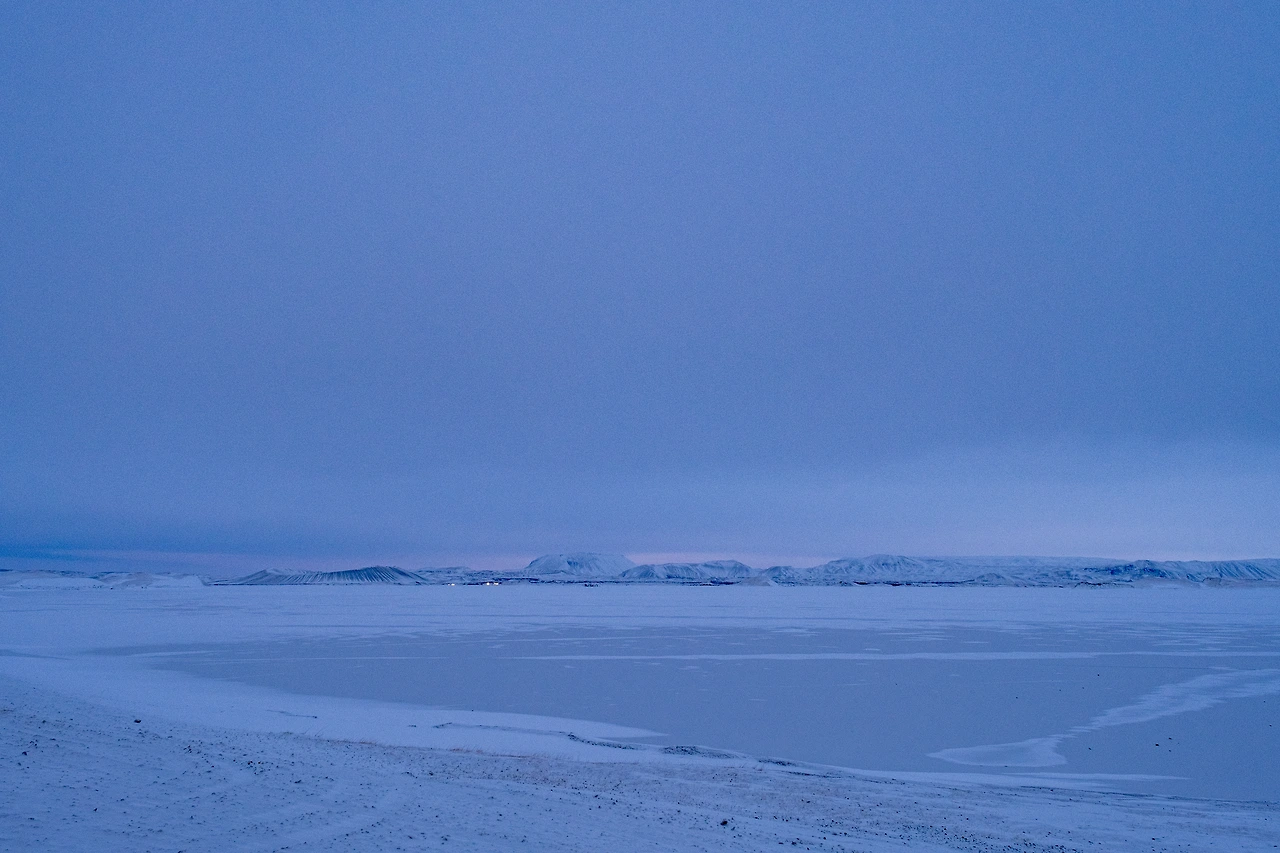 겨울철 아이슬란드 북부가 볼 것이 없다고 말하는 이들에게 난 적어도 이 순간만큼은 격렬하게 동의할 수 없다고 외치고 싶었다. 비록 생동감은 찾아볼 수 없었지만, 겨울잠을 자고 있는 호수의 모습은 마치 차이코프스키의 백조의 호수가 생각날 만큼 느릿한 여유 속에 기품이 넘치는 클래식 음악 같은 모습이었다.