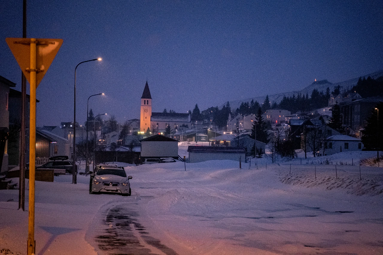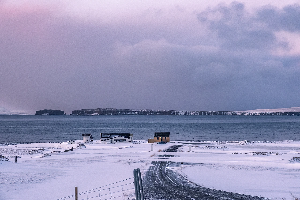 달비크라는 도시가 갖는 특별한 의미는 또 있었다. 이곳이 바로 아이슬란드의 최북단이자 북극권에 속하는 그림지(Grímsey)섬으로 가는 페리가 출발하는 관문도시였던 것이다. 극지방, 남미, 아프리카 대륙과 같이 내게는 가기도 어려울뿐더러 가볼 결심을 하는 것부터가 엄청난 존재들의 이름은 듣기만 해도 나의 마음속에 큰 파장을 주곤 한다. 극지방이 저 방면에 있다니 뭔가 얼떨떨하고 실감은 잘 나지 않는다는 생각을 하며 잠시 차를 세우고, 달비크가 보이는 풍경을 잠시 새벽 공기를 한껏 마시며 바라본다. 문득 어둠 속에 둘러쌓여 있는 뒤편의 피요르드가 더 웅장해 보이는 기분을 느꼈다.
