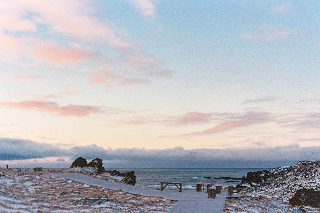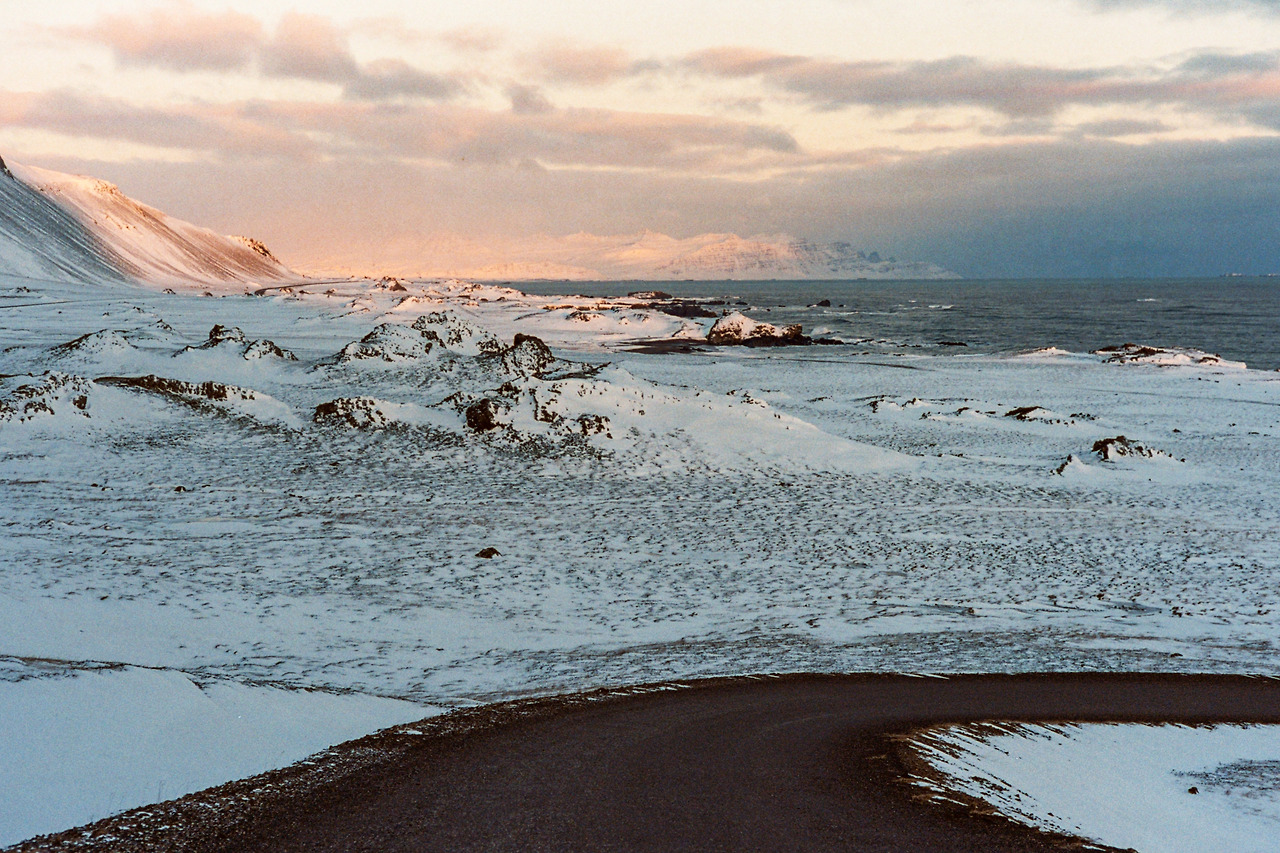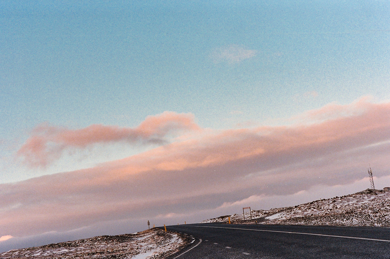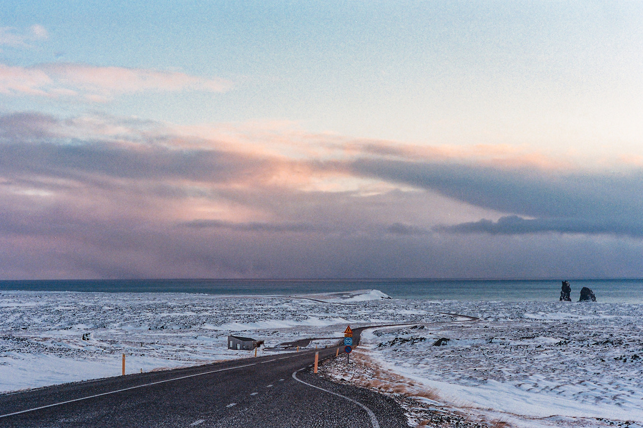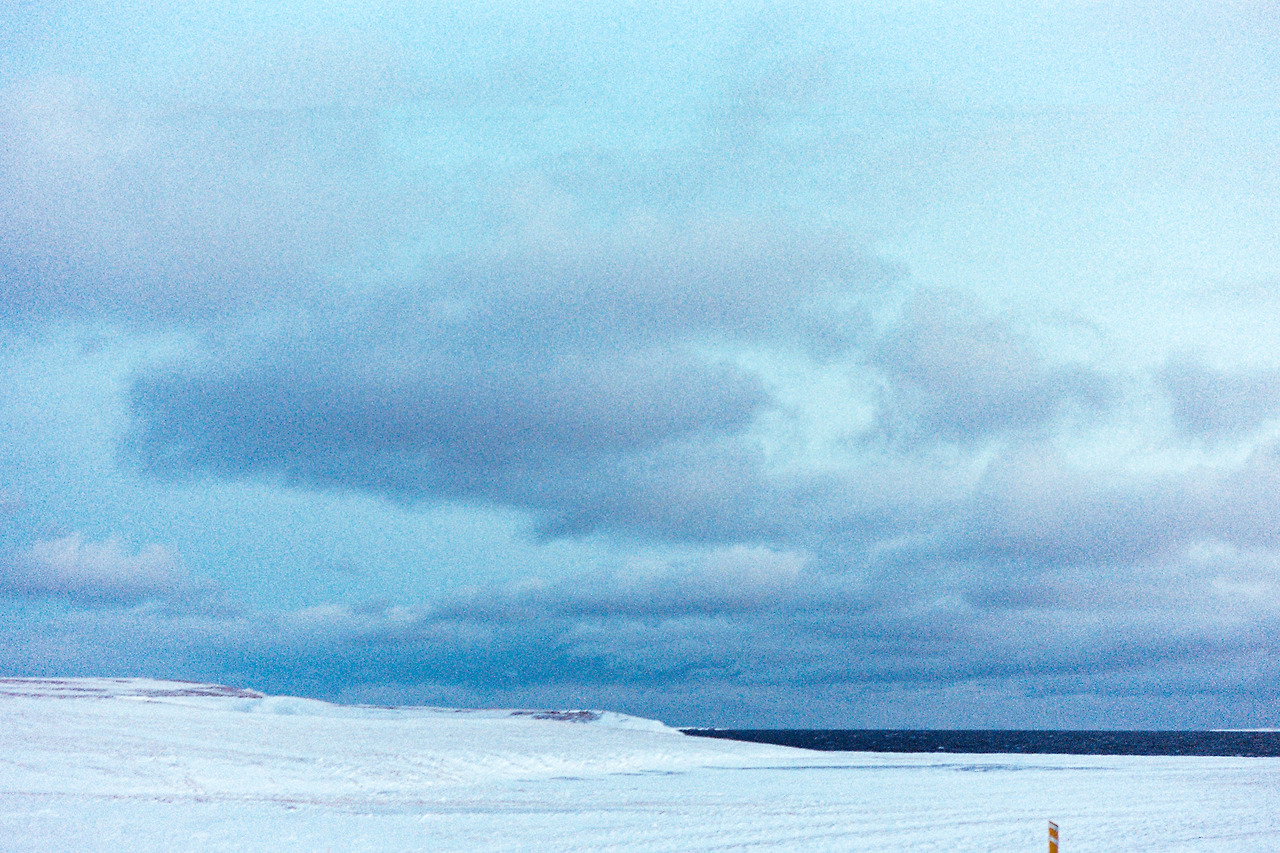 북부를 벗어나 서부로 벗어나던 날의 컷들이 필름에서 이어진다. 즉흥적으로 잠시 1번 국도를 벗어나 극지방 해안선 길을 선택했던 이 날 나의 작전명 '궤도 이탈'. 작전은 대성공이었다. 아마 필름이 담아낸 색 중에서 이 구간의 사진들이 가장 아름답지 않았을까 생각한다. 구름, 하늘의 붉은빛, 푸른 겨울빛까지 모든 것이 완벽했다.