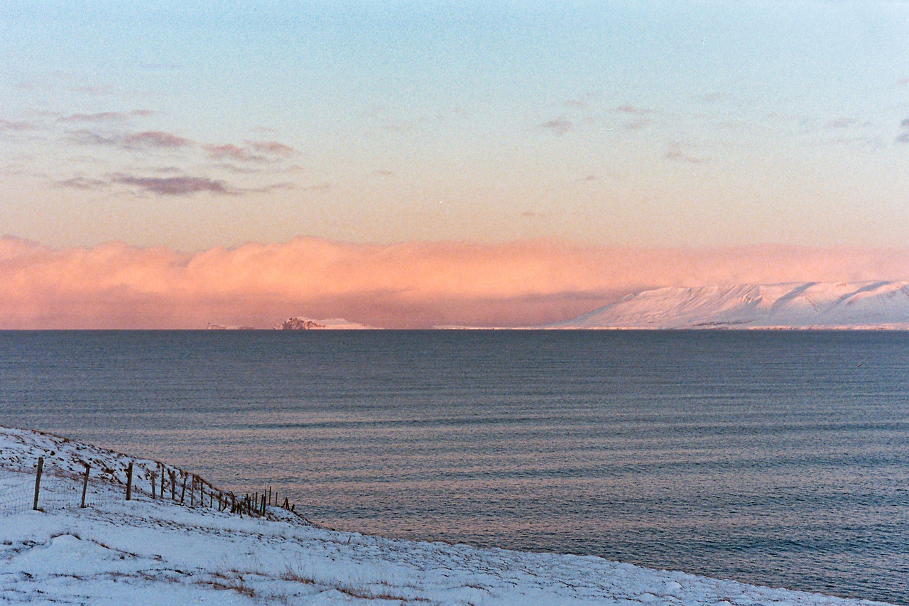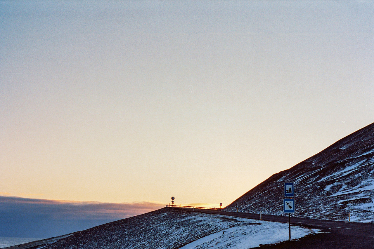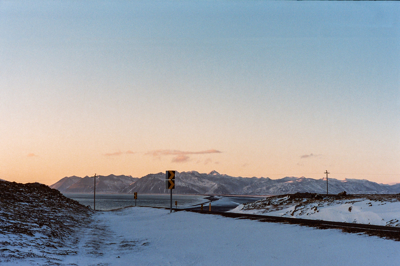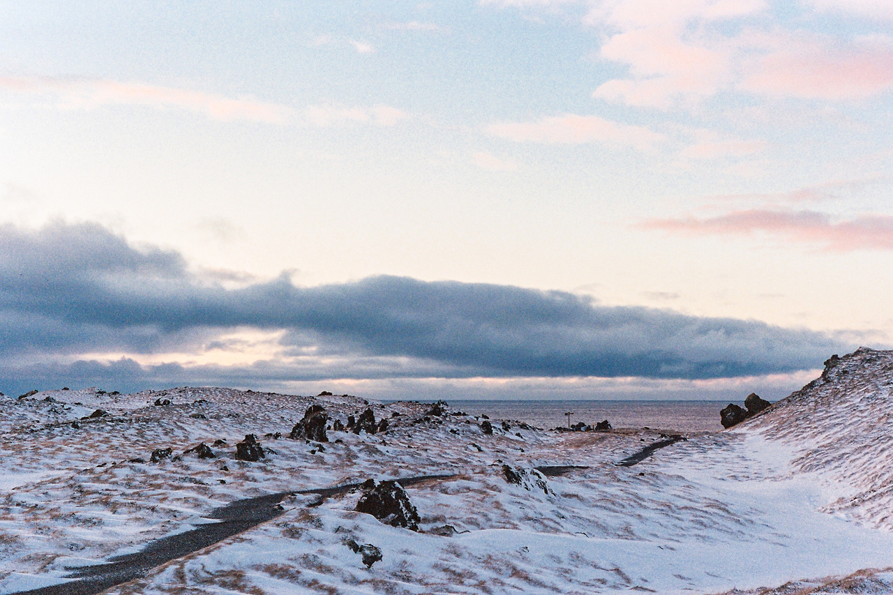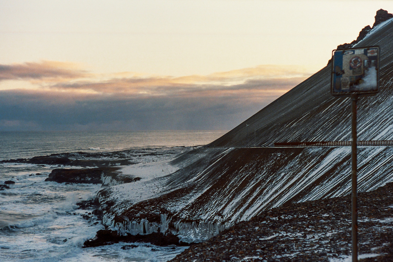북부를 벗어나 서부로 벗어나던 날의 컷들이 필름에서 이어진다. 즉흥적으로 잠시 1번 국도를 벗어나 극지방 해안선 길을 선택했던 이 날 나의 작전명 '궤도 이탈'. 작전은 대성공이었다. 아마 필름이 담아낸 색 중에서 이 구간의 사진들이 가장 아름답지 않았을까 생각한다. 구름, 하늘의 붉은빛, 푸른 겨울빛까지 모든 것이 완벽했다.