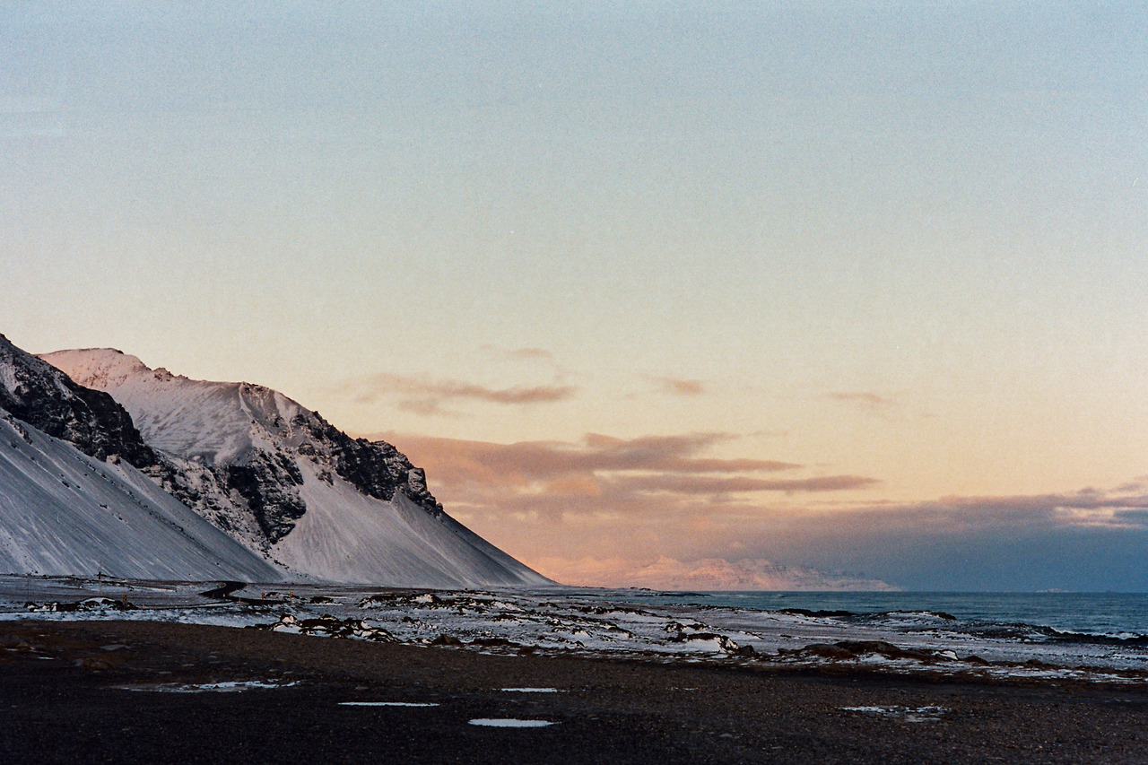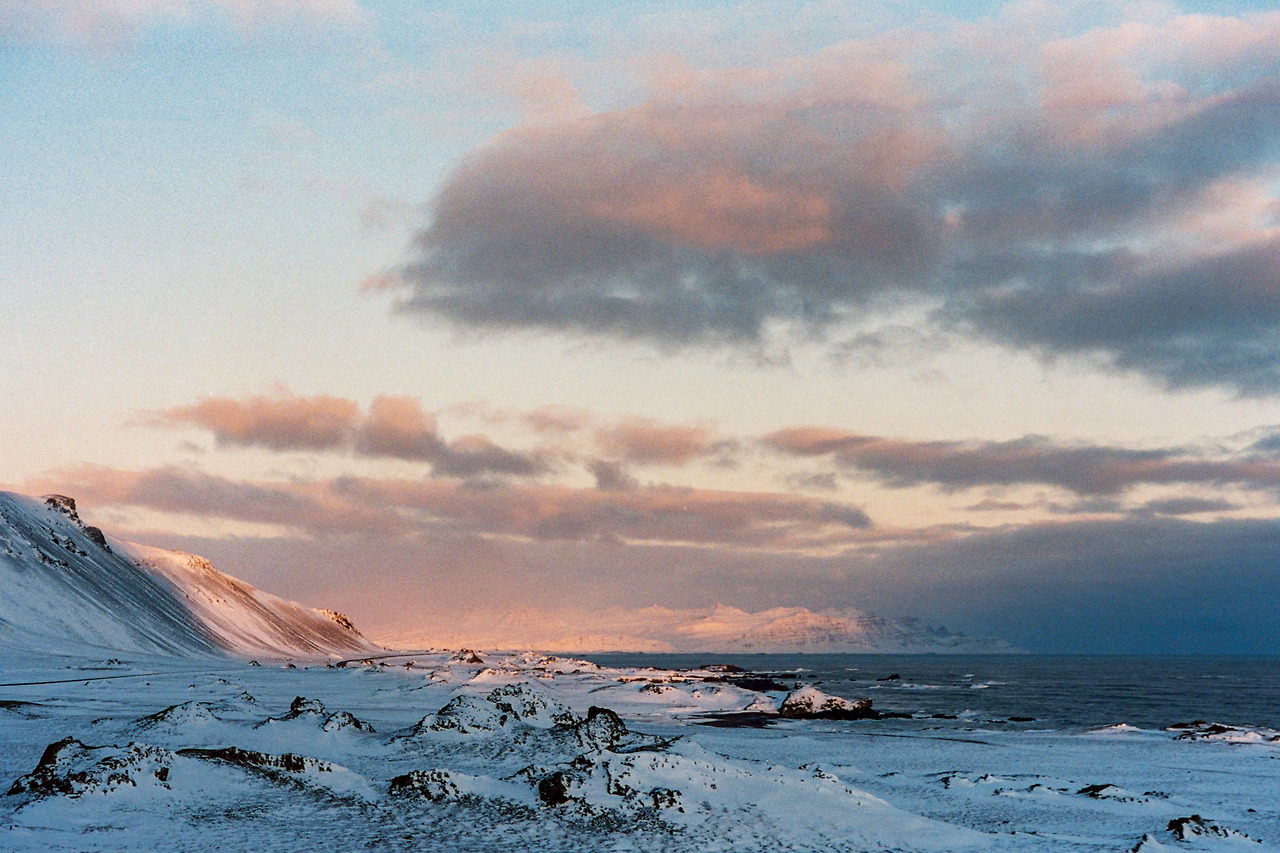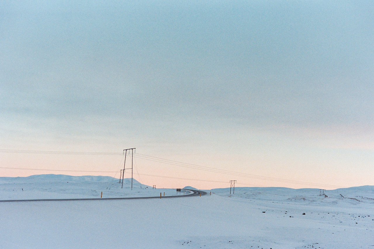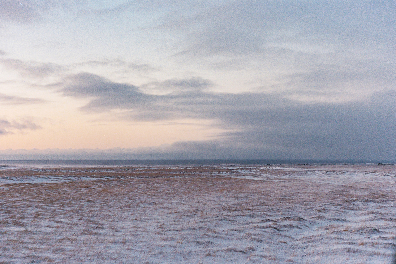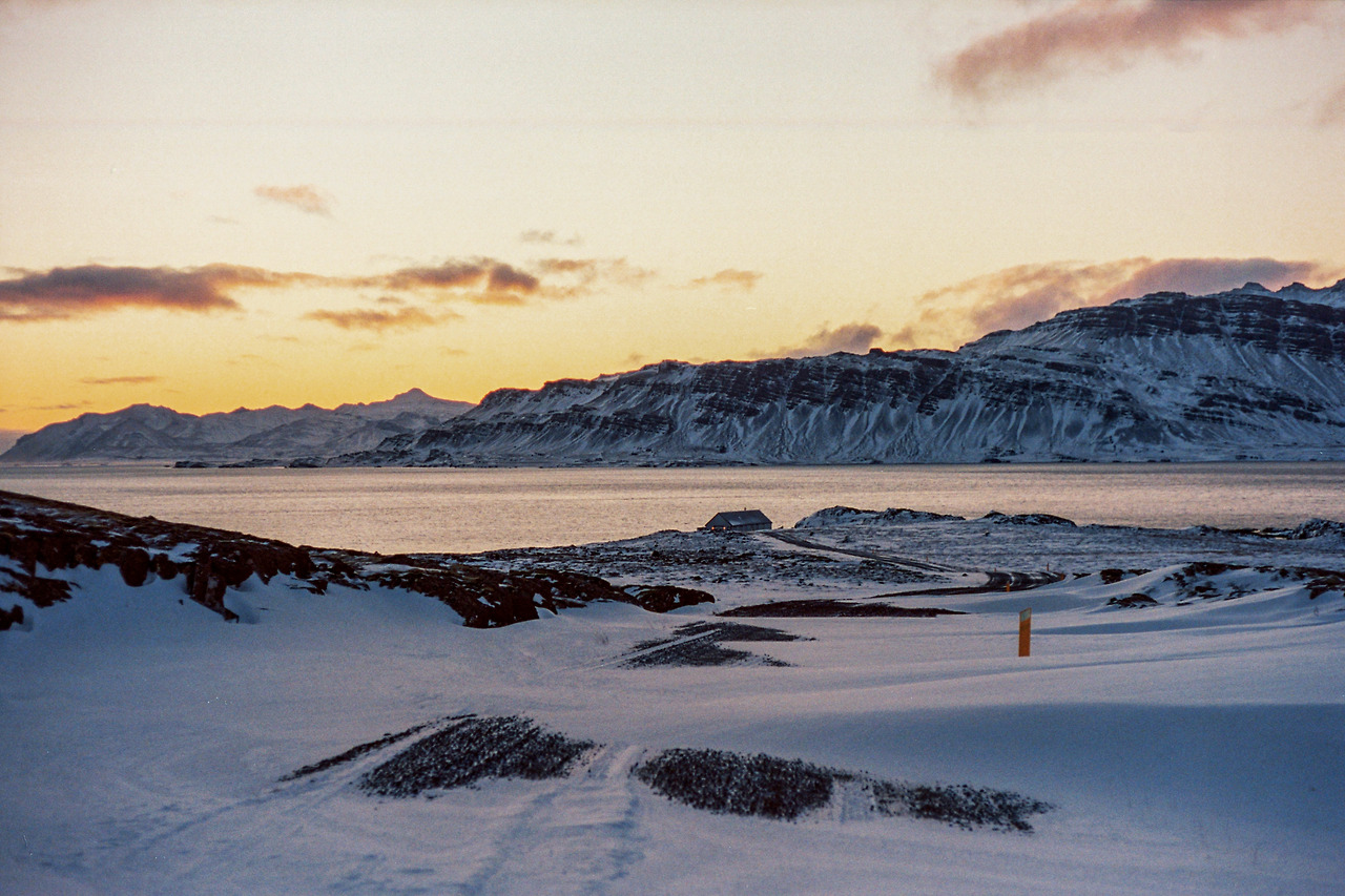 북부를 벗어나 서부로 벗어나던 날의 컷들이 필름에서 이어진다. 즉흥적으로 잠시 1번 국도를 벗어나 극지방 해안선 길을 선택했던 이 날 나의 작전명 '궤도 이탈'. 작전은 대성공이었다. 아마 필름이 담아낸 색 중에서 이 구간의 사진들이 가장 아름답지 않았을까 생각한다. 구름, 하늘의 붉은빛, 푸른 겨울빛까지 모든 것이 완벽했다.