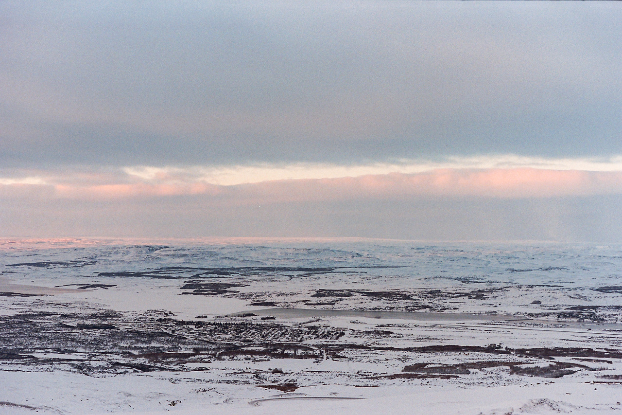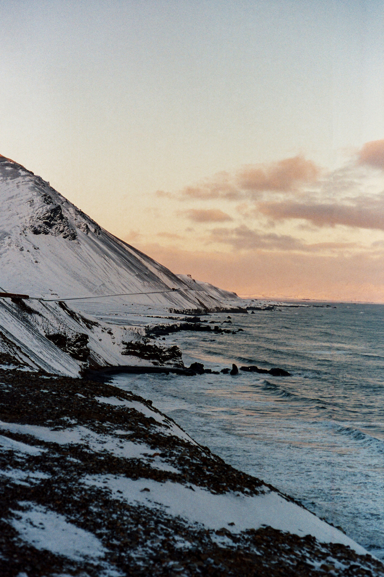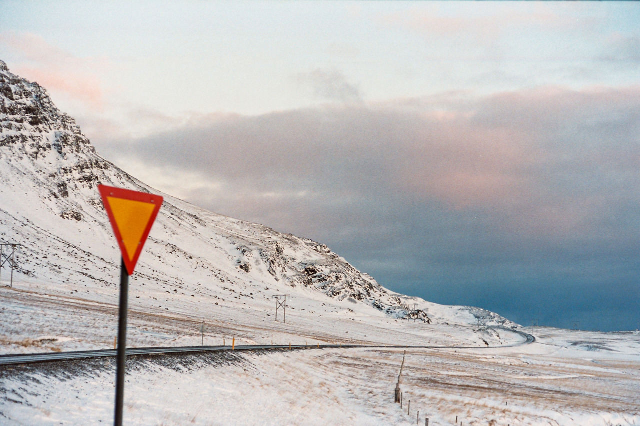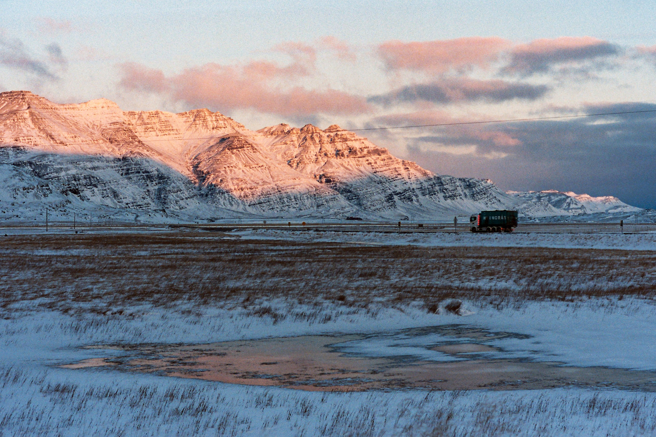 북부를 벗어나 서부로 벗어나던 날의 컷들이 필름에서 이어진다. 즉흥적으로 잠시 1번 국도를 벗어나 극지방 해안선 길을 선택했던 이 날 나의 작전명 '궤도 이탈'. 작전은 대성공이었다. 아마 필름이 담아낸 색 중에서 이 구간의 사진들이 가장 아름답지 않았을까 생각한다. 구름, 하늘의 붉은빛, 푸른 겨울빛까지 모든 것이 완벽했다.