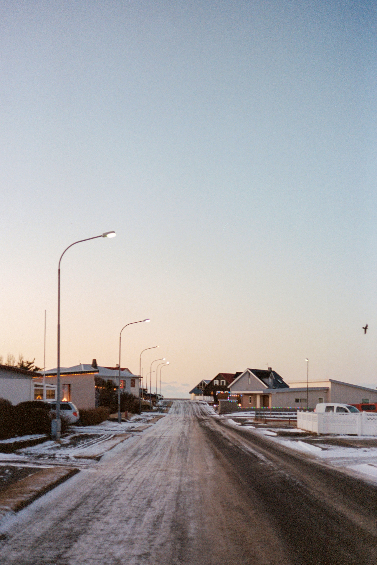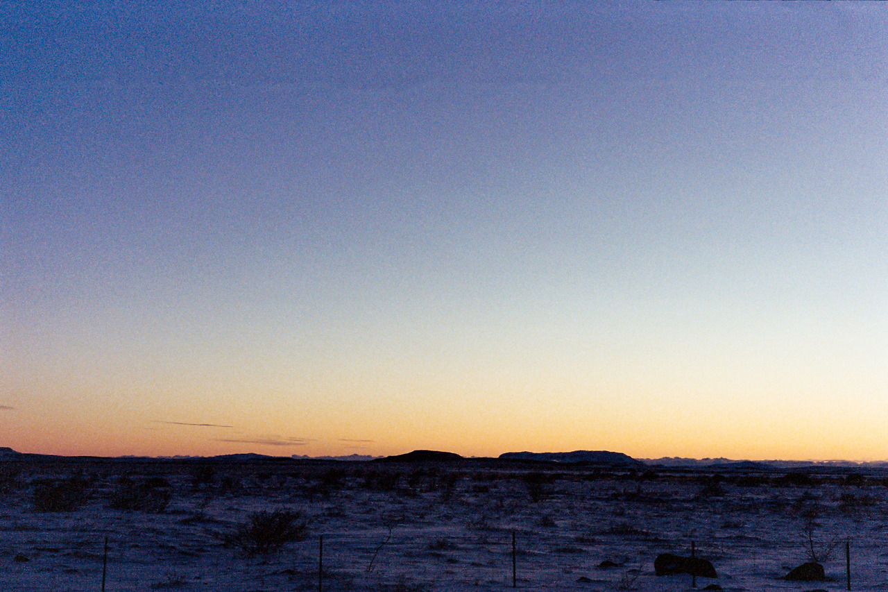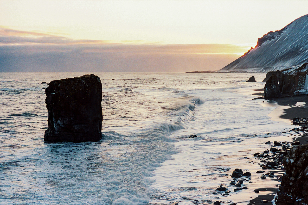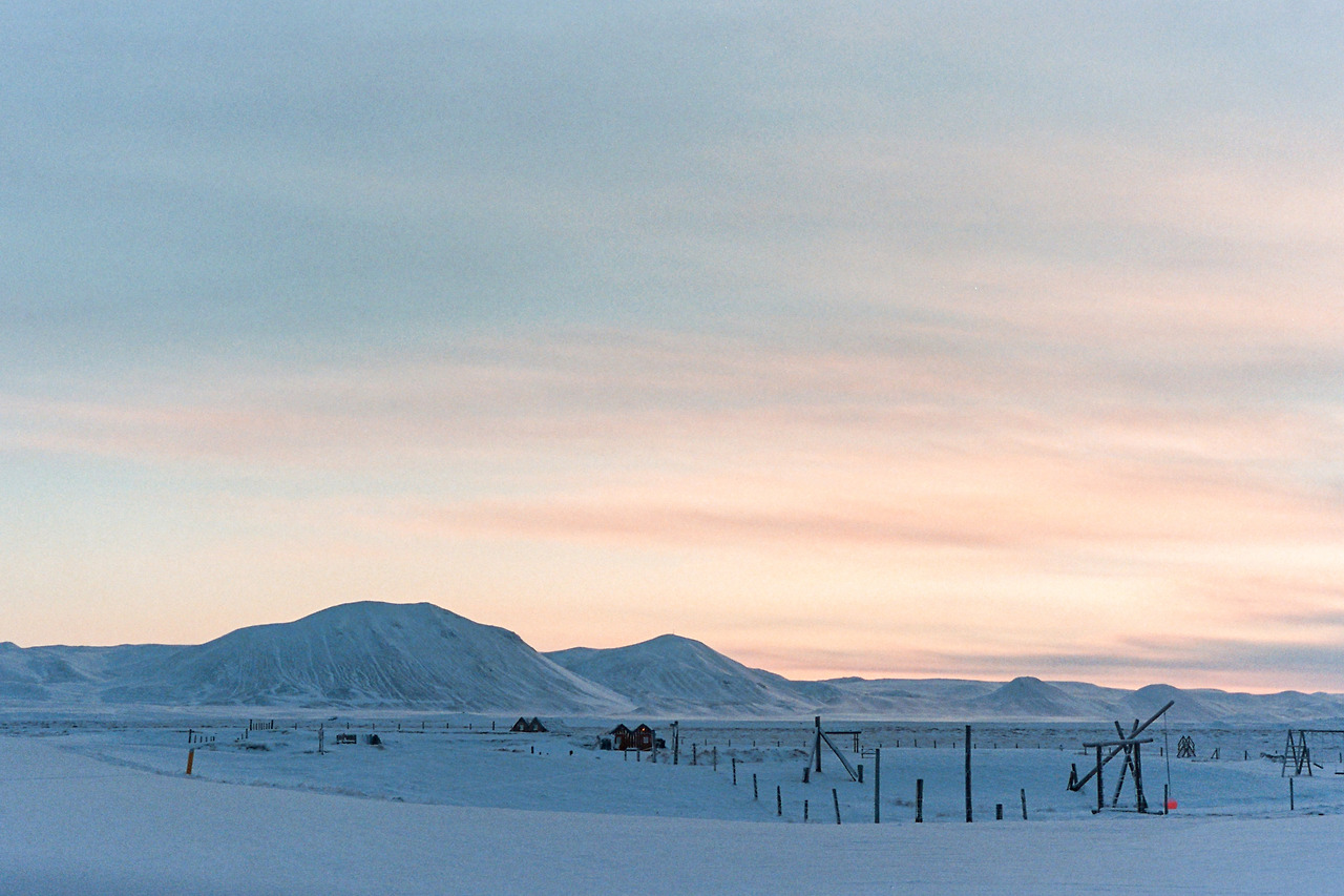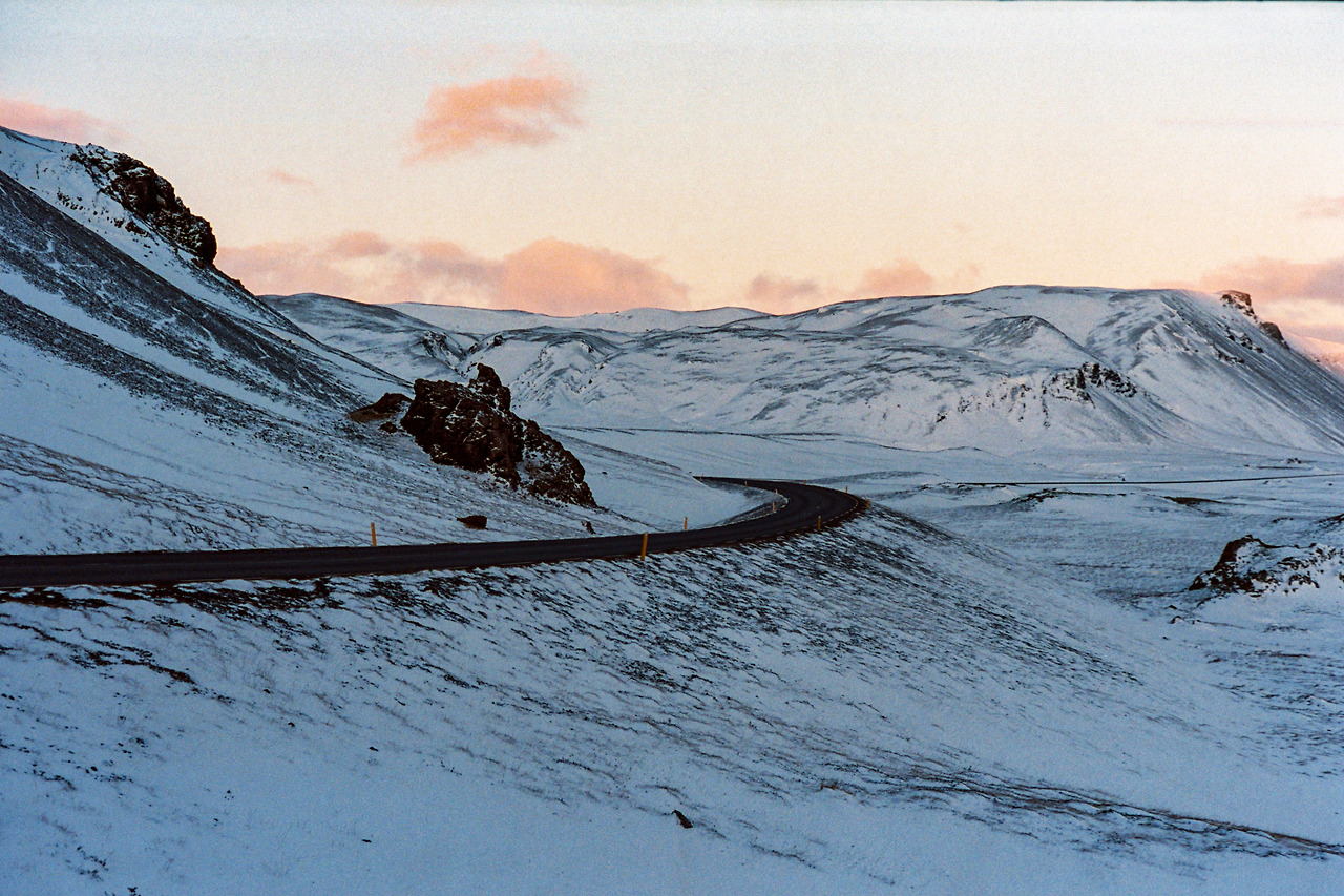 북부를 벗어나 서부로 벗어나던 날의 컷들이 필름에서 이어진다. 즉흥적으로 잠시 1번 국도를 벗어나 극지방 해안선 길을 선택했던 이 날 나의 작전명 '궤도 이탈'. 작전은 대성공이었다. 아마 필름이 담아낸 색 중에서 이 구간의 사진들이 가장 아름답지 않았을까 생각한다. 구름, 하늘의 붉은빛, 푸른 겨울빛까지 모든 것이 완벽했다.