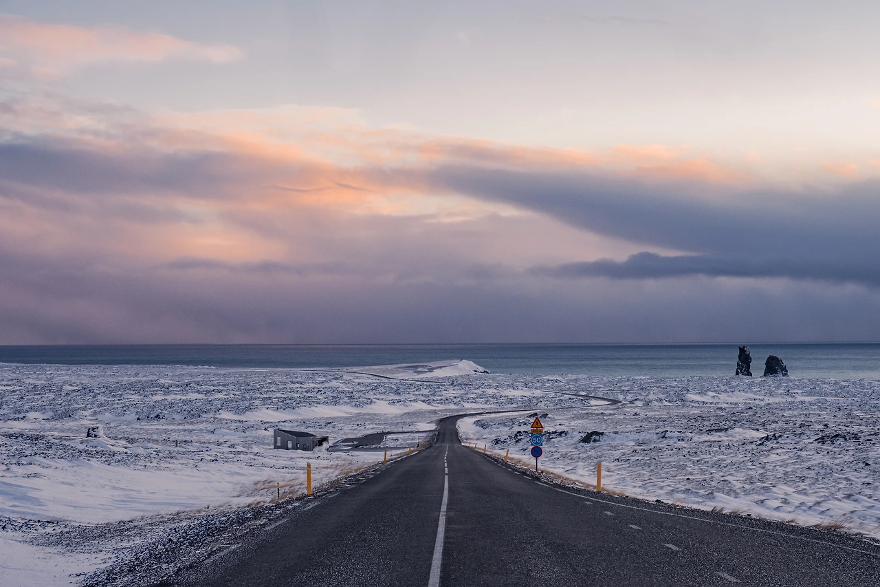 2022년 12월 27일 오전, 스네이펠스네스 반도 론드란가르(Lóndrangar) 인근 도로