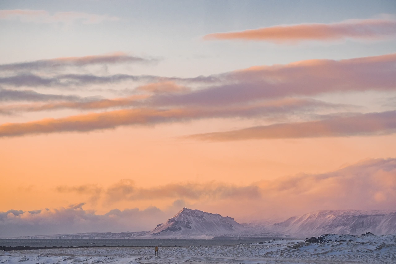 초조해지기 시작했지만 '그럼에도 볼 건 다 보고 가야지'라는 마음으로 움직이던 나의 하루는 이트리 퉁가(Ytri Tunga) 해변까지 되어서야 비로소 속도를 늦췄다. 이 해변가는 물개들의 서식지로 유명한 곳이었지만, 당연하게도 눈보라가 휘날리고 있던 이 추운 겨울 해변가에 물개들이 있을 리는 없었다. 물개들은 없었지만 유독 일순한 끓어오르는 홍염과도 같은 적색 빛깔의 노을이 아름다웠다. 그마저도 유독 거세지고 있던 바람에 오래 밖에 서 있기가 어려웠지만 이게 아이슬란드에서 만나는 나의 마지막 석양일 테니, 운명의 실타래가 또 한 번 허락하지 않는 한 아마도 이것은 마지막일 테니 그 순간을 소중히 여기고 마지막 1분까지 천천히 거닐며 만끽했다. 그렇게 서부에서 허락된 마지막 나의 하루를 다 소모했다. 기약 없는 인사를 저무는 태양과 함께 실어 보내며 마지막 석양이 사라져 간다.