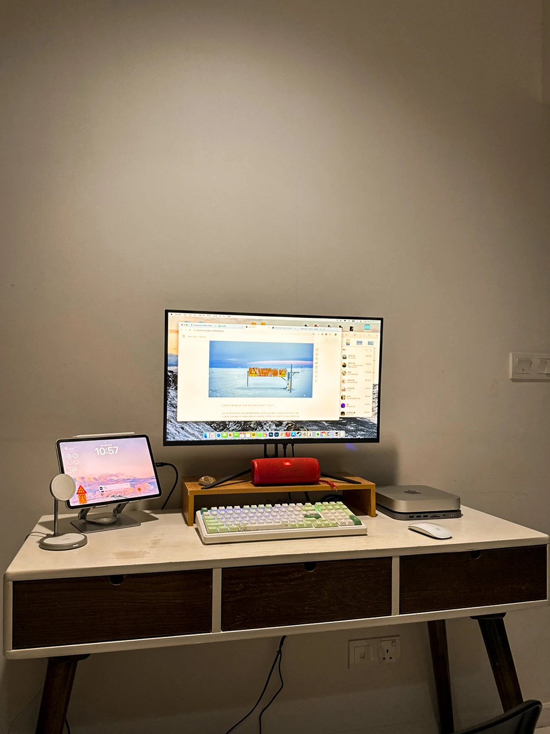 부엌을 한바탕 대청소하고, 원했던 것들로 채워 넣고 나니 그다음에는 한국에서 박스 채 들고 온 맥미니 컴퓨터를 스테이션으로 구축할 차례였다. 집주인이 넣어준 책상이 상당히 마음에 안 들었지만, 야구의 김성근 감독이 남긴 명언, '언제나 주어진 것에서의 최선을 뽑아낸다'는 일념으로 접근해야지 어쩌겠는가. 마음에는 썩 들지 않지만 어쨌든 침구류의 세팅과 그 맞은편 벽 쪽에 워크스테이션도 함께 완성한다. 나의 유튜브 머신과 사진, 글쓰기 작업을 함께하게 될 자리가 될 것이었다.