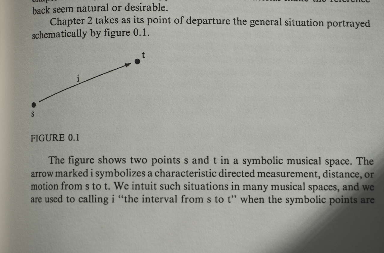 계희승: 그렇지 않고요. s와 t는 말하자면 집합이에요. 쉽게 생각하면, 하나의 음들의 집합 혹은 화음들의 집합일 수도 있고, 아니면 조성의 집합일 수도 있겠죠. 어쨌건, 그 음악의 정체성(identity)을 갖고 있는 것들의 집합을 의미해요. t는 또 다른 음악적 정체성을 갖고 있는 것들의 집합이라고 볼 수 있고요. 그렇다고 할 때, 지금까지 대부분의 음악이론은 s와 t가 무엇인지, 그것들이 어떻게 생겼는지에 혈안이 되어 들여다봤다면, 르윈은 그게 아니라는 거예요. 우리가 봐야 할 건 s와 t 사이에 있는 화살표, i에요. 여기서 i는 인터벌(interval)인데요. 르윈은 s라는 음악적 정체성에 무엇을 했을 때 또 다른 음악적 정체성을 갖는 t가 되는가를 살펴야 한다는 거예요. 그게 하나의 음에서 또 다른 음이 될 수도 있고, 화음에서 화음이 될 수도 있는 거죠. 어떤 음악적 집합(s)이 있을 때 거기에 무엇을 했기에 다른 음악적 집합(t)이 나오느냐에 관한 것이 이 책 전반에 걸쳐서 하는 이야기에요. 그렇게 생각하면, 분석하려는 음악이 조성 음악이 됐건, 조성이 없는 음악이 됐건 장르 불문하고 어디에도 대입할 수 있겠죠.