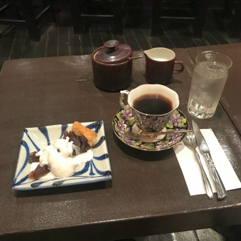 가미야마치에서 조금 걸어 보자. 큰교차로 일각에 있는 Yokohamaya가 보이면 반드시 지하로 향해볼 것. 계단을 내려가 문을 열면 근사한 공간을 마주하게 된다. 탁한 공기와 담배 연기로 희미해진 조명과 입에 담배를 문 장년의 사장님이 작은 프레임에 담긴다. 손님이라고는 다찌석에 앉아 앉아 펼친 종이신문에 집중한 양복 셋업한 남자 한 명 뿐이다. 마치 시간이 멈춘듯 재즈 음악도 느리게 흐른다. 바쁘게 돌아가는 도심의 반 층만 내려왓을 뿐인데, 마치 과거로 돌아간 느낌이다. 이곳의 시간은 정말이지 느리게 흐르는 지도. 다양한 종류의 블렌딩 커피와 디저트, 이곳의 시그니처 하이라이스를 맛볼 수 있다. 사장님이 추천해주시는 커피 한 잔과 따뜻한 생크림이 올려진 애플파이를 주문했다.