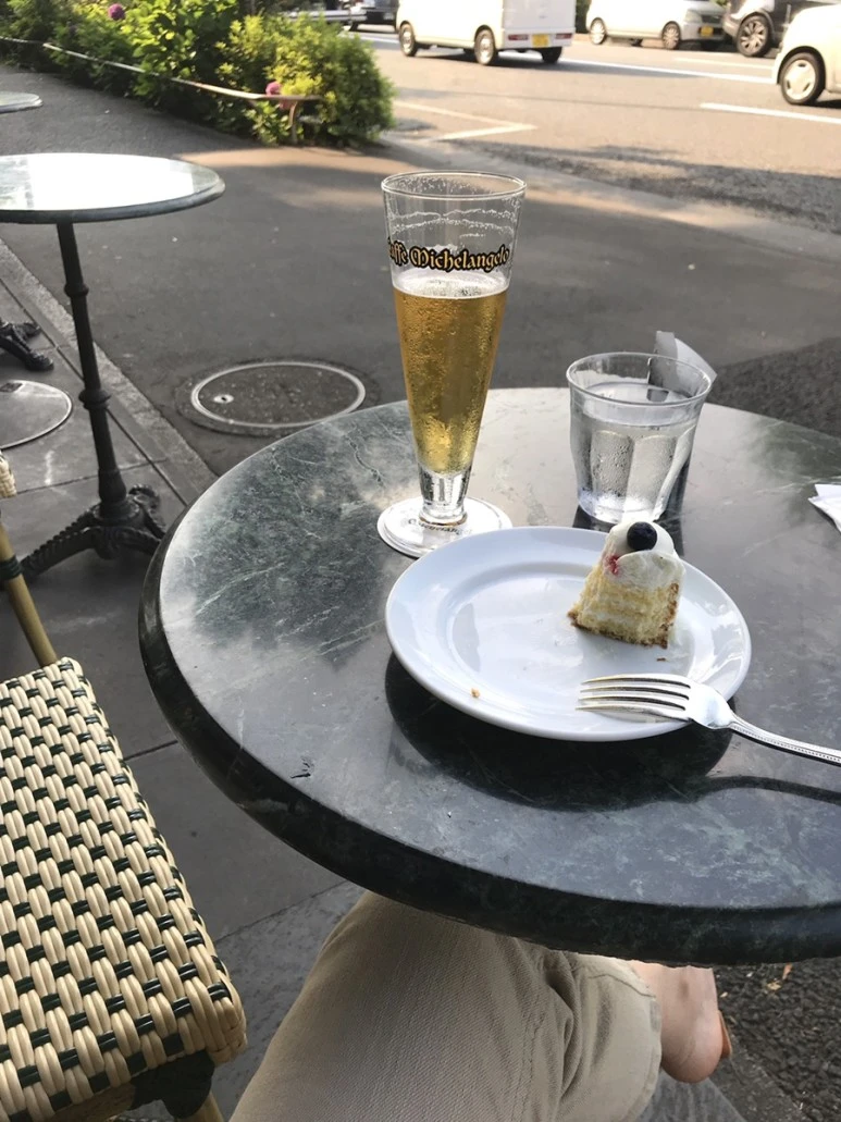 6월의 날씨를 가장 완벽하게 받아들일 준비가 되어있는 다이칸야마 Cafe michelanzelo. 유럽풍의 내부 대신, 볕이 좋아 야외 테라스자리에 자리를 잡았다. 쇼트케이크와 더위 식혀줄 맥주를 주문했다. 목적지 없이 걷다 조금 지칠즈음 눈앞에 보이는 카페를 들어가 목축이며 잠시 쉬는 그 행복. 어쩌면 여행하는 이유의 전부일지도 모르겠다. 다음번엔 적절한 거품과 은은한 커피향이 일품인 샤케라또와 함께 하리라.