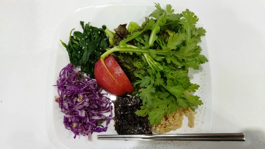 쌈야채와 현미밥, 김은 같지만