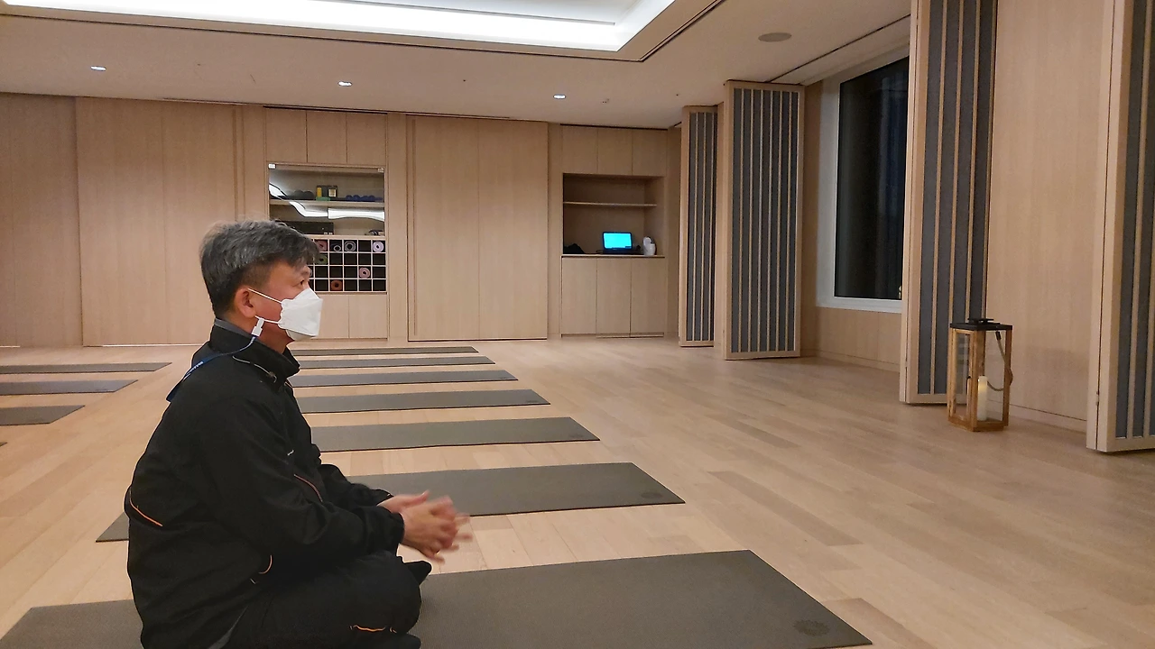 명상만 하는 것은 아니고 요가 자세를 몇 가지 한 뒤