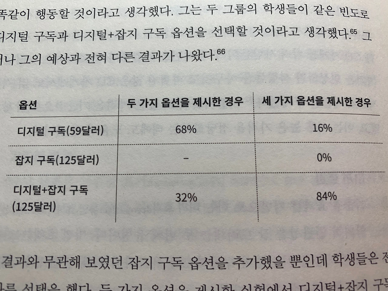 두 가지 옵션을 제시한 경우 가격이 저렴한 디지털 구독을 더 많이 구매했다.