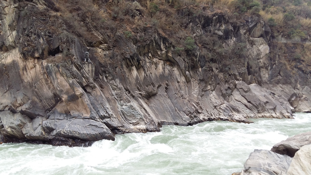 아득한 아래로 호도협 물살이 푸른빛과 우윳빛 조화로 흘러내렸다. 눈이 녹은 물이 금사강을 이루고 장강으로 흘러 상해로 이어지는 유유한 물길이었다.