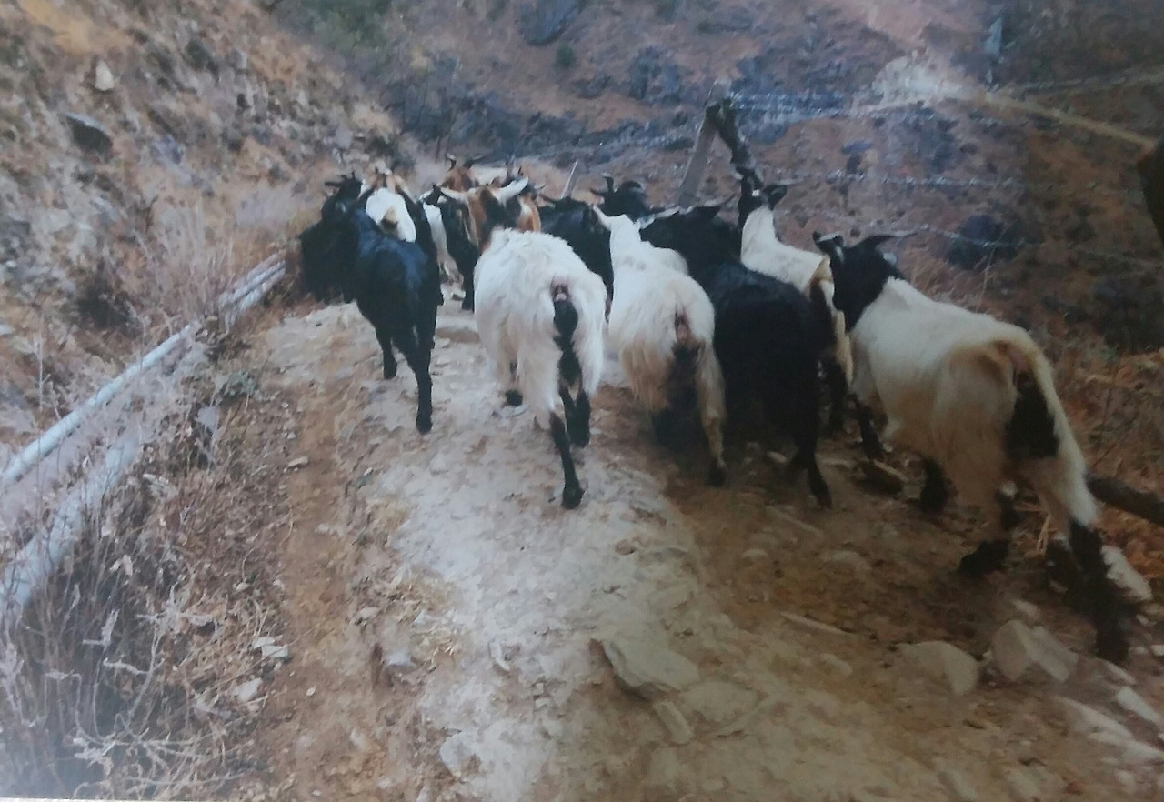 염소 떼를 몰고 가는 아낙의 뒤를 따라 호두나무 숲길을 지나 차마고도를 다시 걸었다.