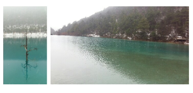 며칠 뒤에 보았던, 만년설이 녹은 백수하 협곡 물은 석회와 구리를 품고 반사되는 물빛이 찬연했다.