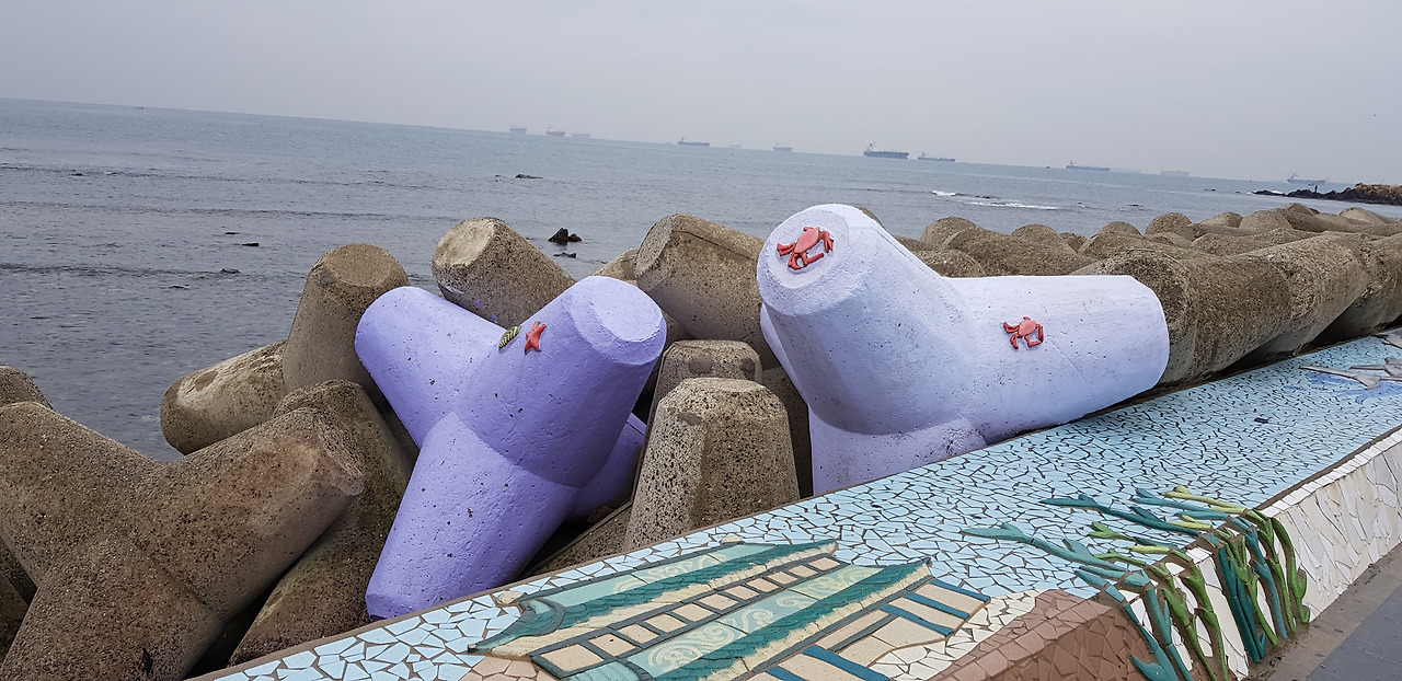 두루뭉술 몽돌, 덤프트럭이 툭툭 흘리고 간 듯 산만하게 흩어진 검은 바위들, 그럭저럭 벽화, 살찐 돼지의 느끼한 속살이 연상되는 바위들이 방어진항에서 울산 대왕암까지의 풍경이었다. 바다가 비릿했다.