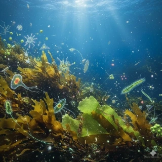 기타 조류와 플랑크톤: 규조류, 와편모조류(예: 세라티움, 페리디니움), 클로렐라 등