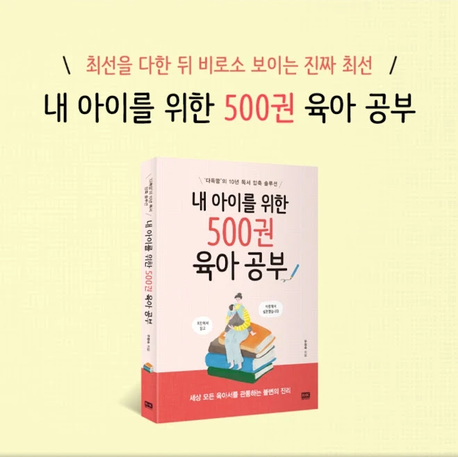 전문가의 말과 책에 귀가 솔깃하던 엄마가 10년 동안 '내 아이 맞춤식 육아'를 한 이야기가 책으로 나왔어요. <내 아이를 위한 500권 육아 공부>에서 육아서 500권을 읽고 실천하는 과정에서 좌충우돌 경험담이 자세하게 소개됩니다.