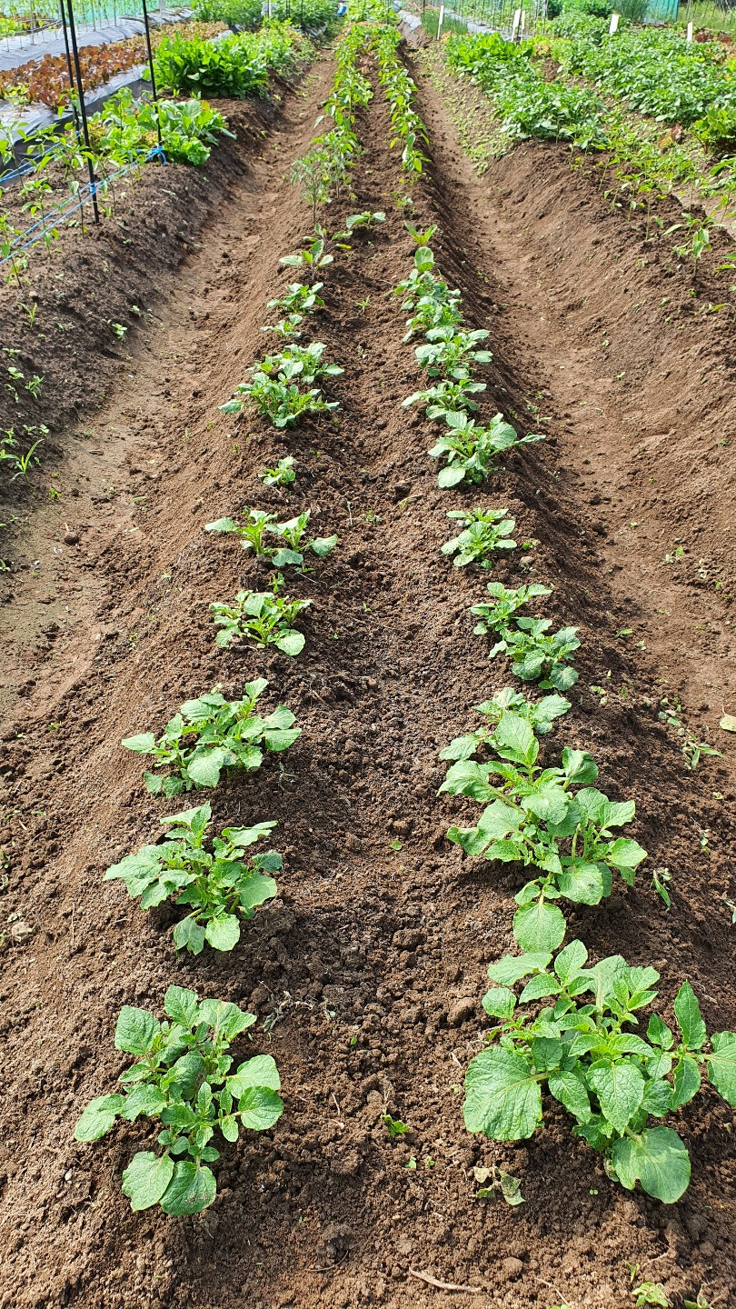 커가는 중에도 흙을 포슬포슬하게 땅을 뒤집어주는 것 또한 튼실한 열매 맺는데 많은 도움이 된다셨다. 어르신과 하는 얘기를 텃밭도 들었을 텐데... 지난 4월 초 씨앗 심은 옥수수 싹이 트지 않아 모종 시장 갔다가 비닐하우스 안의 클래식 음악을 들으며 싹 틔우는 걸 보게 됐었다. 음악 들으며 기분 좋게 싹 틔웠을 이들 앞에서 부지런한 주인과 게으른 주인의 얘길 듣고 속상해하며 기분 상해하지 않았을까 염려되는 맘도 있었다.