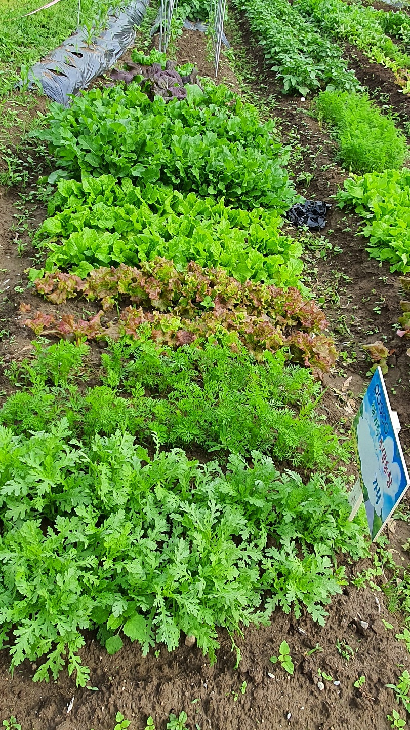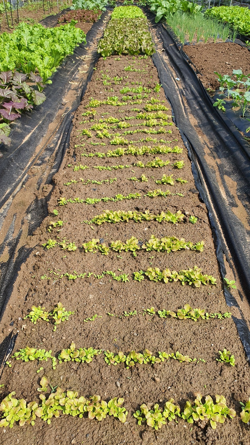 쑥갓 뒤 당근, 씨앗 뿌린 상추, 열무, 고추, 모종 상추, 감자, 가지, 방울토마토, 깻잎, 케일, 옥수수 등 우리가 가꾸는 13m2 남짓 텃밭에 절기 맞는 때 맞춰 품어진 녀석들.
