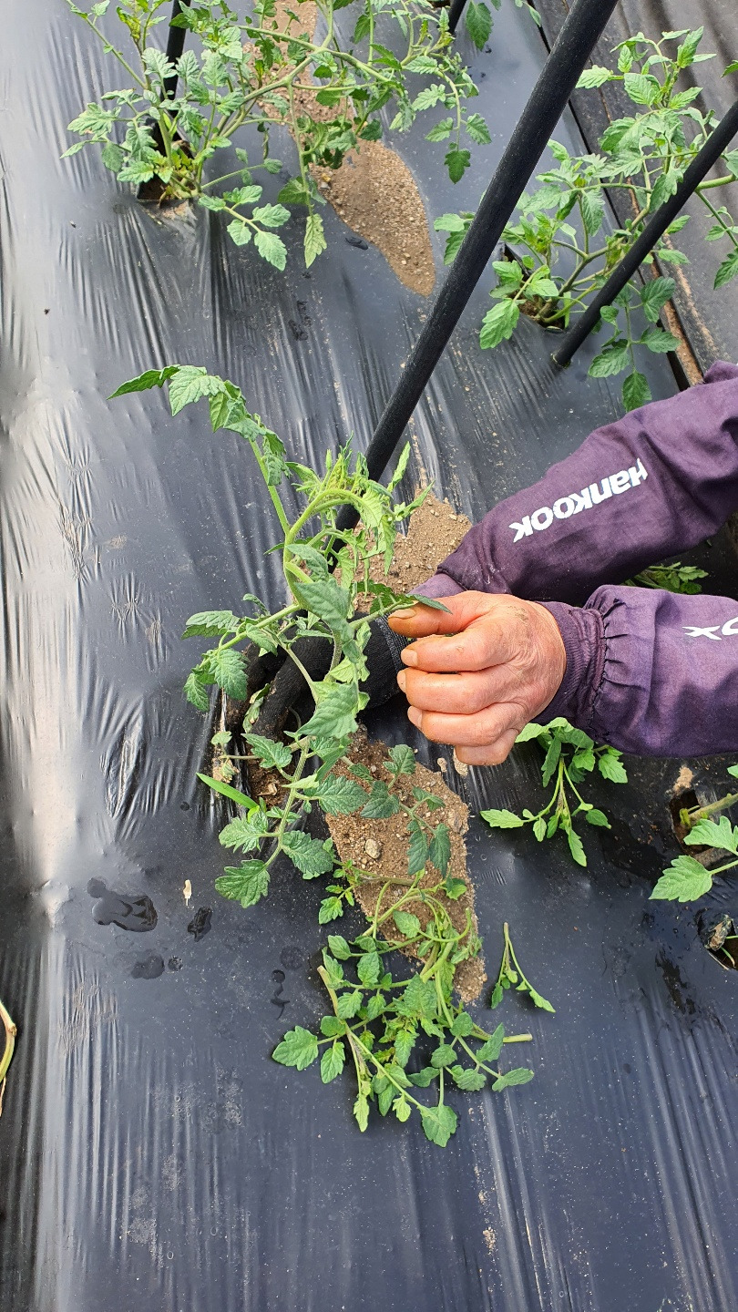 방울토마토 심어놓고 지지대 세워둔다고 될 일이 아니었다. 지지대는 지지대대로 방울토마토는 땅을 기어가듯 수그리고 있는 거였다. 덩굴손이라도 있으면 지지대를 휘감고 올라갈 텐데, 토마토 줄기는 누군가의 손길이 필요해 보였다. 알이 탱탱하게 잘 열게 하려면 본가지를 둔 채 새순 돋는 건 따 주는 게 좋다고 덧붙여 주신다. 열리는 알알이 그대로 둔다면 알이 자잘해서 실하지 않다는 거.