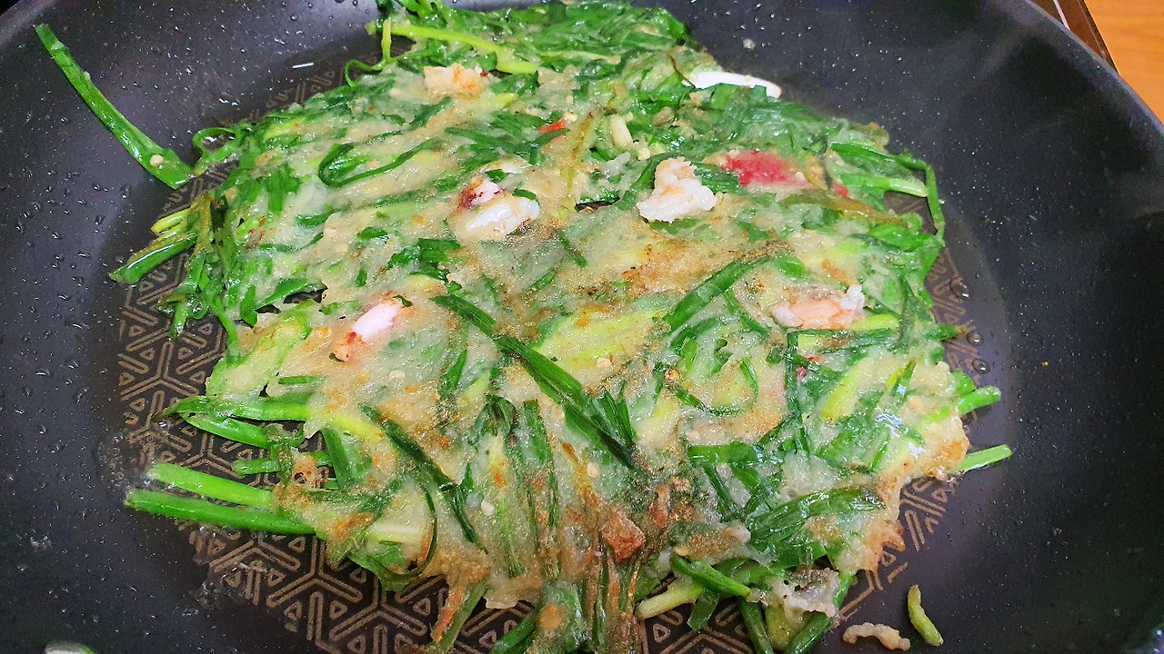 아드닝한테 맛있는 걸 해주려는 맘만 기특해하는 걸로. 튀길 일 없는 튀김 반죽 농도도 안 맞나 보다. 두툼한 옷이 입혀졌다. 요리조리 뒤집어가며 지글지글 겨울 외투 입은 새우를 지져내듯 튀겨냈다.