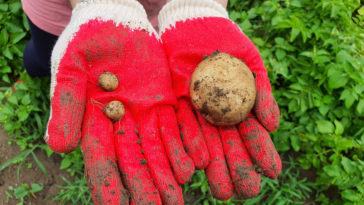 그이는 물뿌리개에 물을 길어다 주는 것이 큰일이라고 물탱크가 설치된 바로 옆 텃밭 자리를 분양받았다. 물 담아 나르지 않고 호수 입구만 손가락으로 반쯤 가린 채 쏘아주면 싱그럽고 촉촉하게 젖게 해 줄 심산이었을 터. 어찌 된 게 호수 한 번 신나게 쏘아보지 못하고 봄에 심은 수확물 중 하나인 감자를 캐야 할 시기가 된 거다.