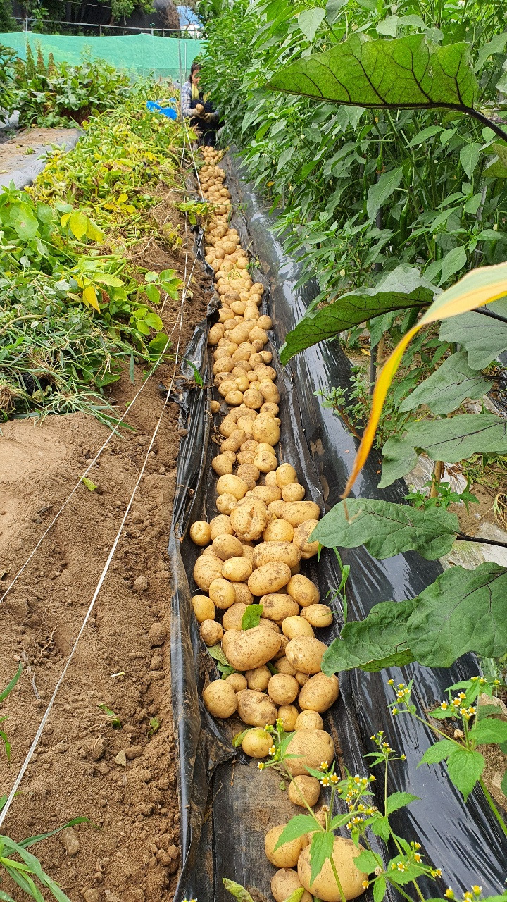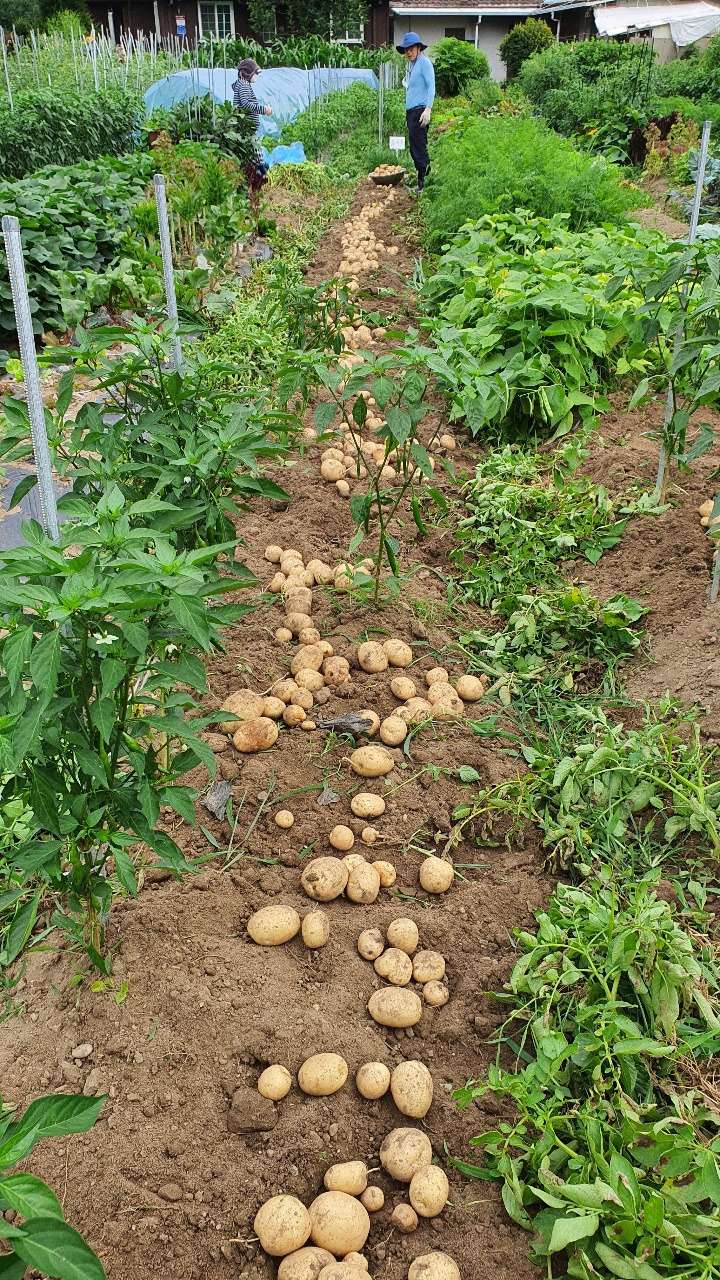 텃밭 이웃분들은 잘 키운 자식 자랑하듯 고랑 위에 감자들을 쭈욱 늘여 놓으셨다.