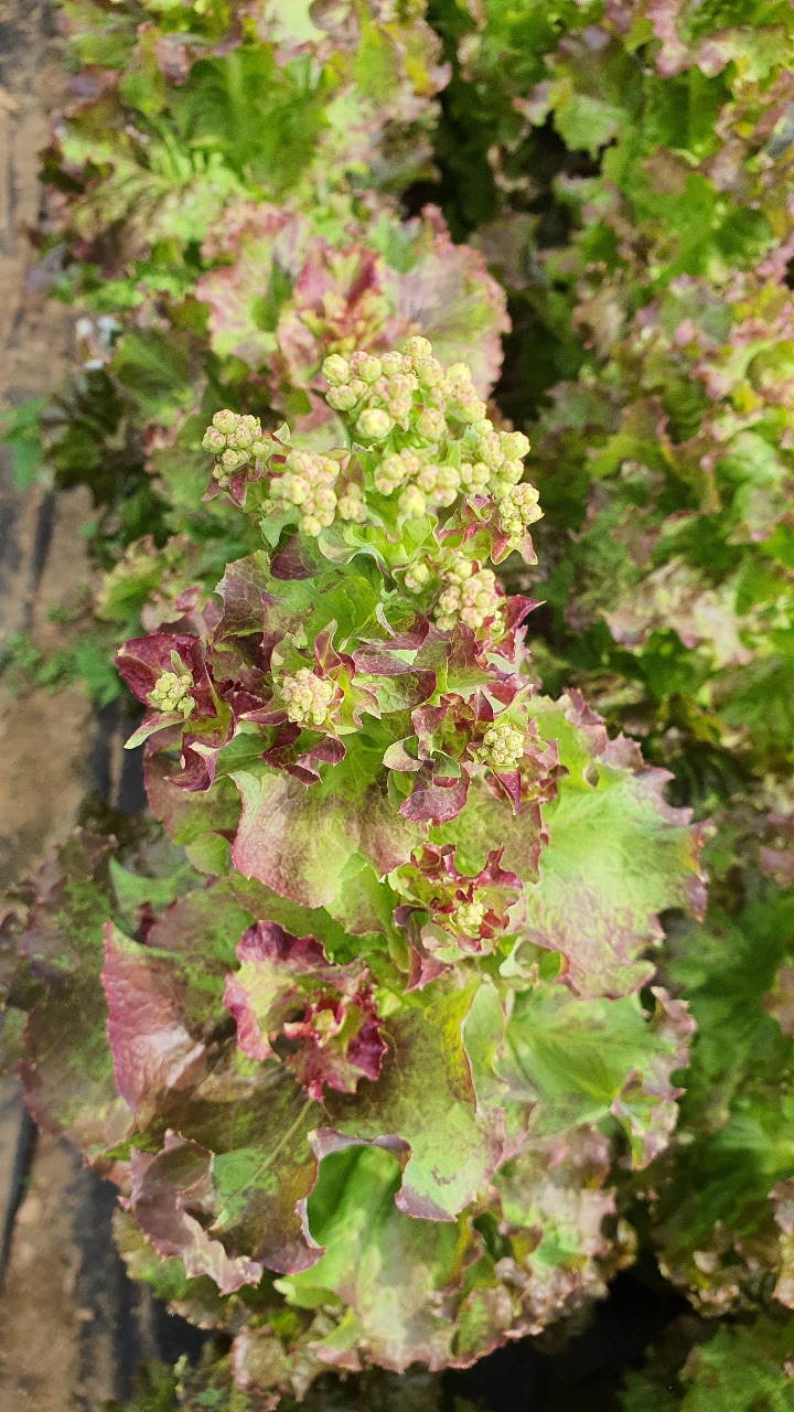 봄날의 식탁, 입 크게 아앙~ 고기쌈 싸게 했던 상추 어여쁜 꽃 피우려는 듯.