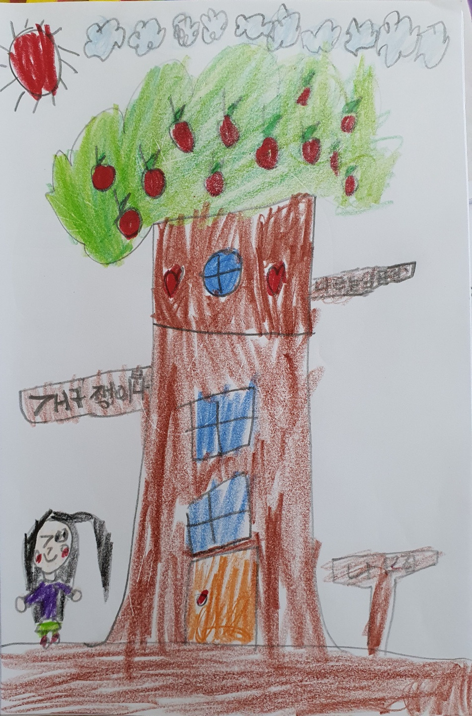 용감한 나무를 상상한 L은 슈퍼 야구선수가 되고 싶은 여자 어린이다.