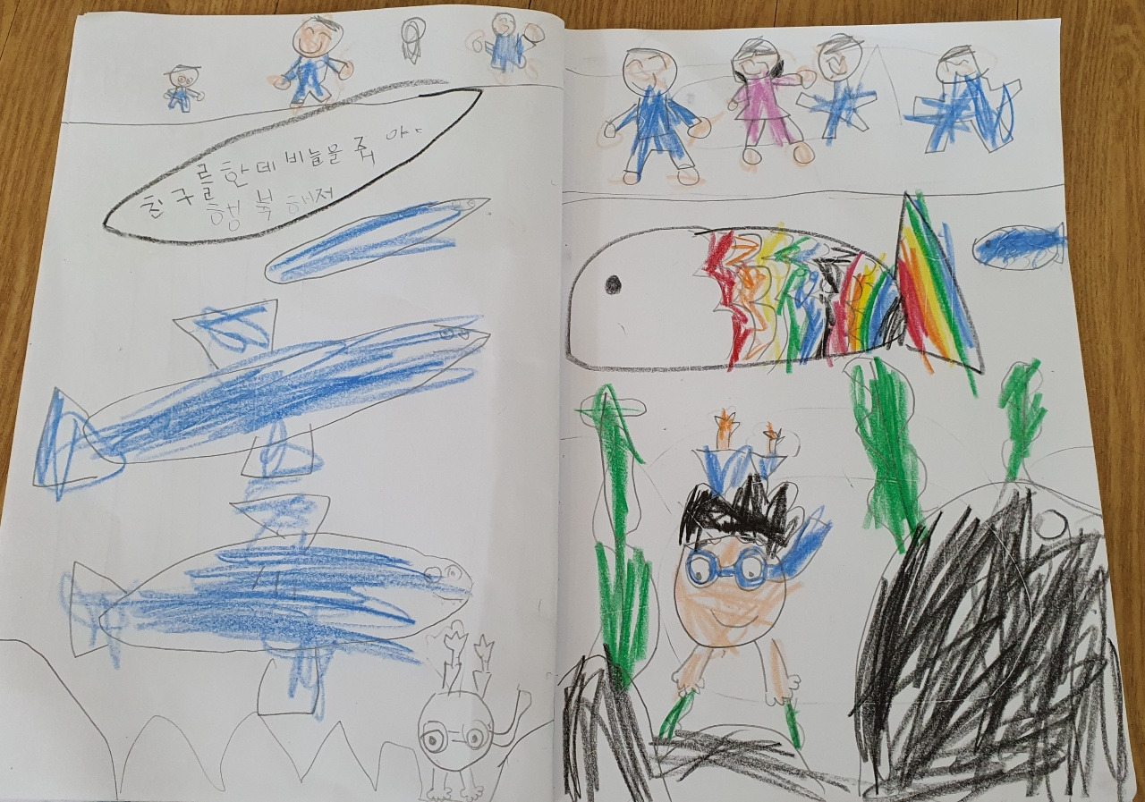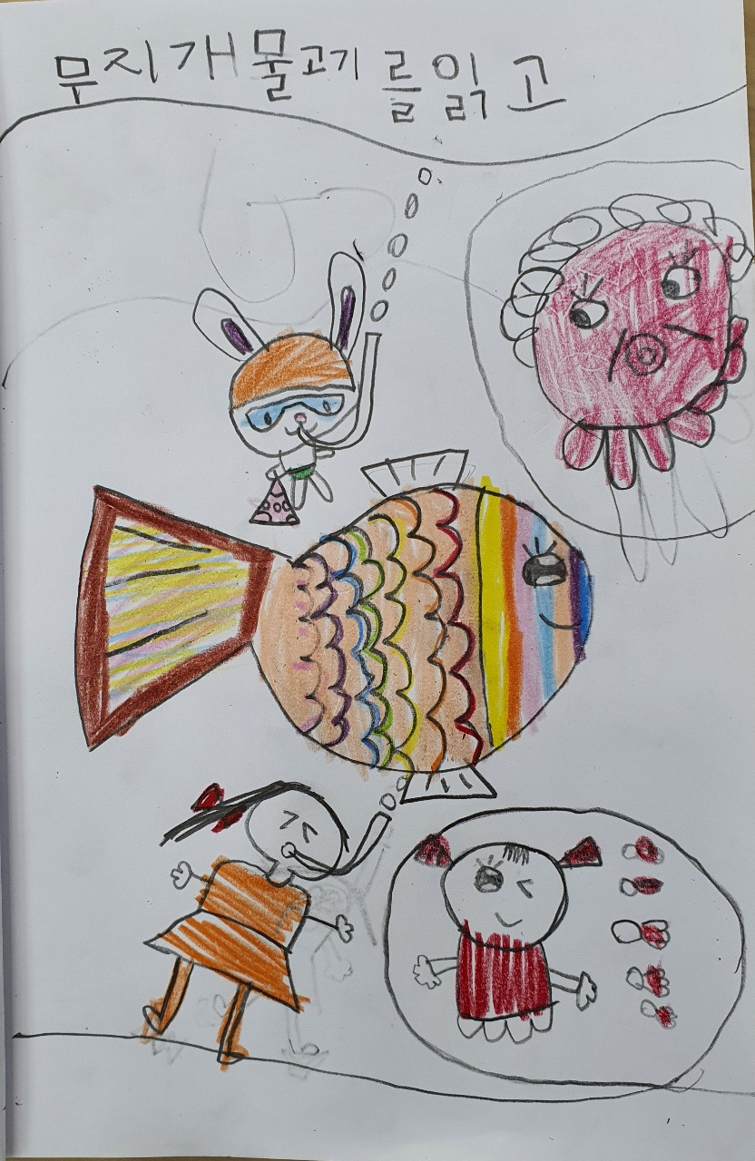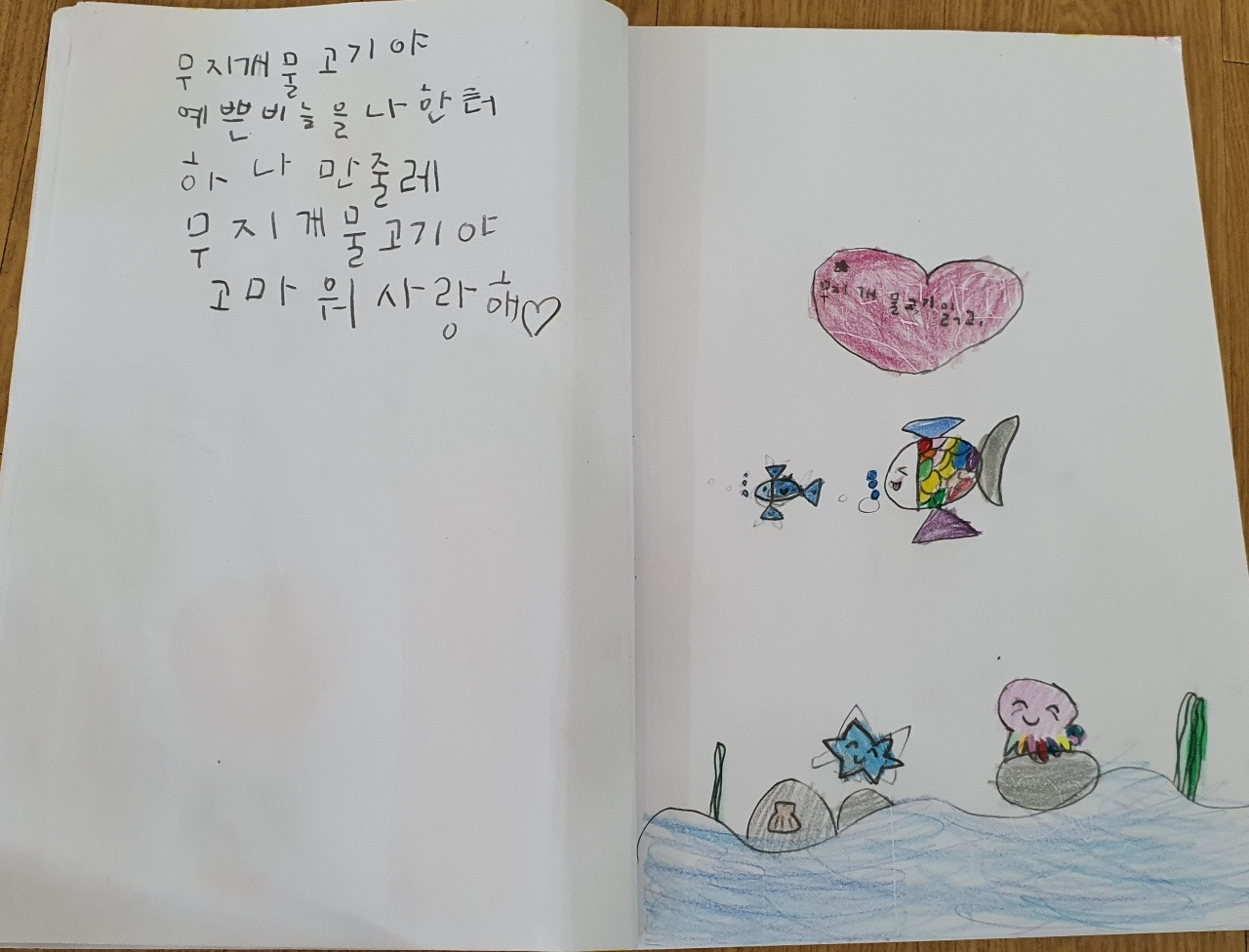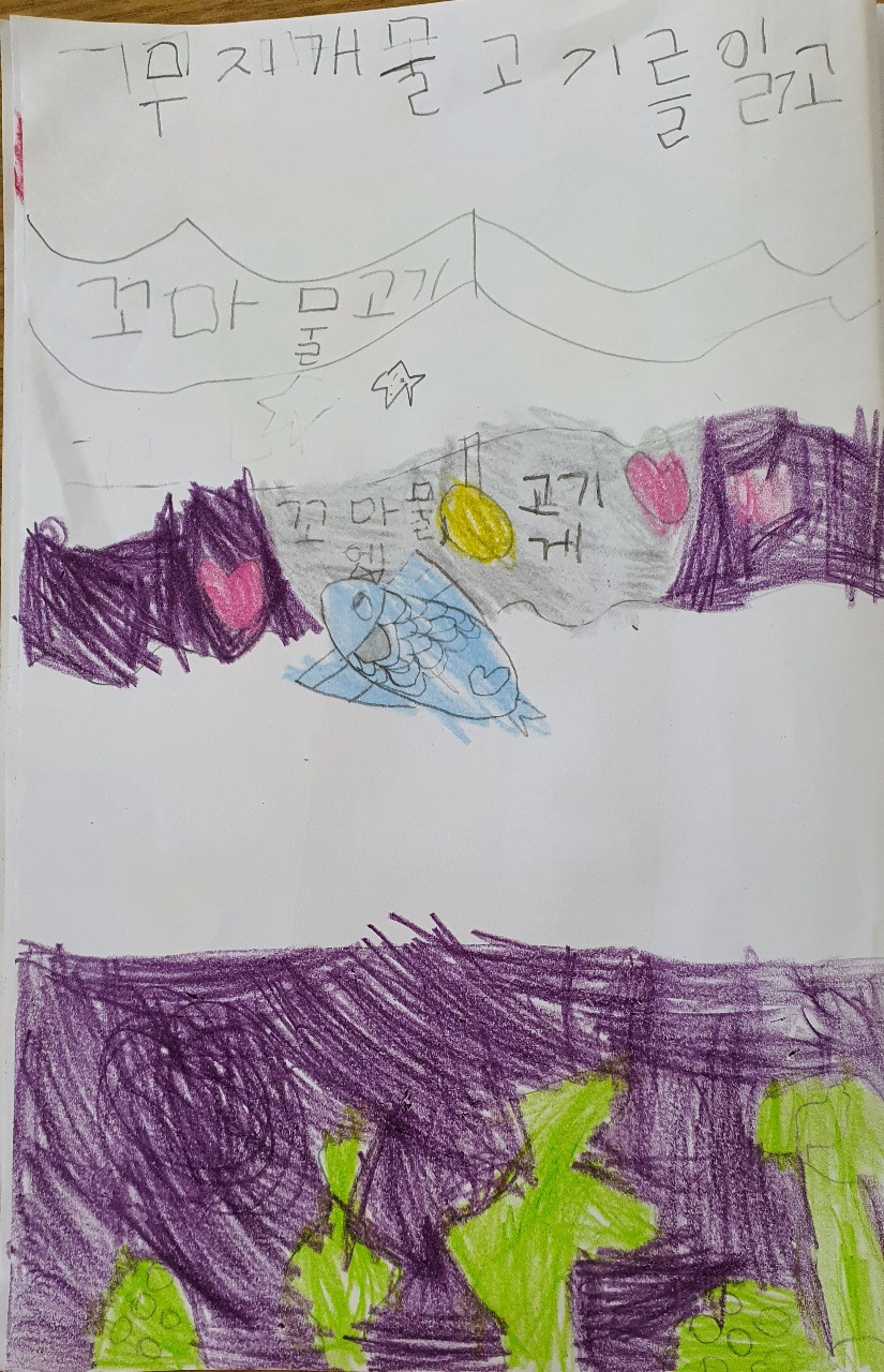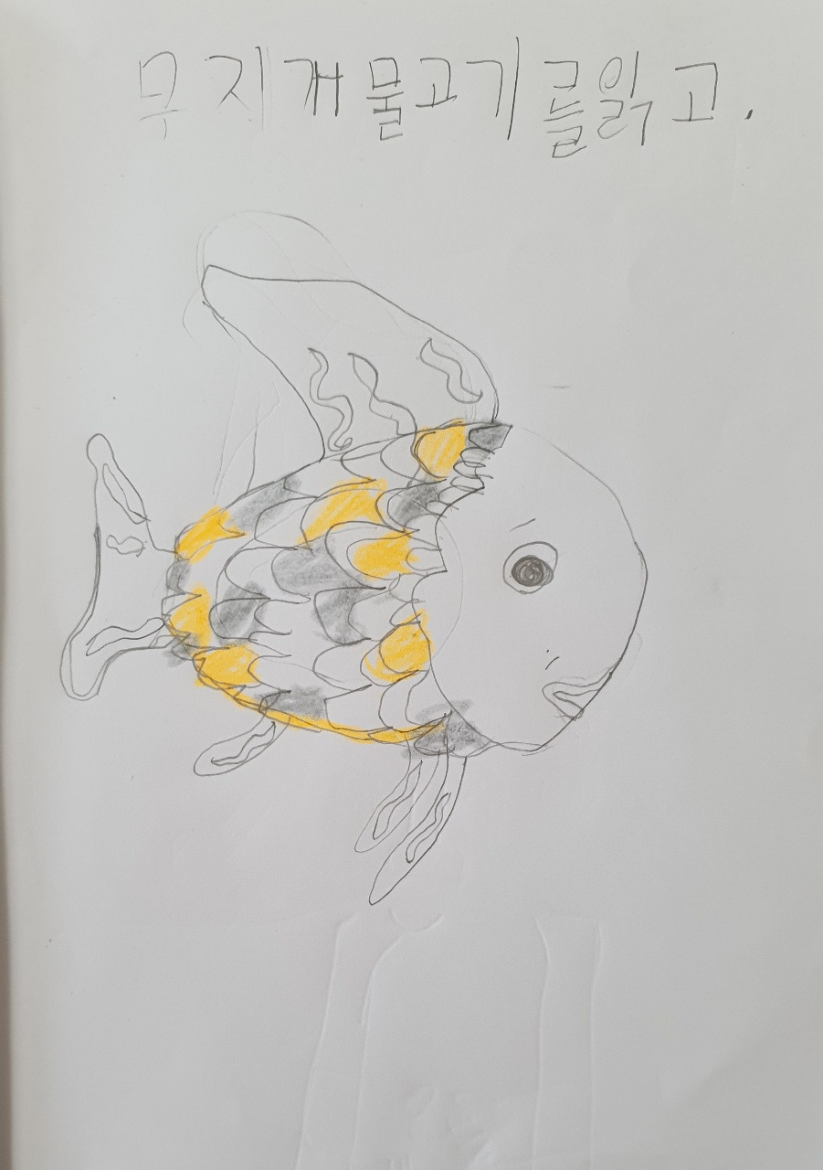 동화를 듣고 가장 기억에 남는 장면을 말하고 글이나 그림으로 표현하는 것까지 마치고 나더니 스스로 대견하게 느껴졌나 보다.