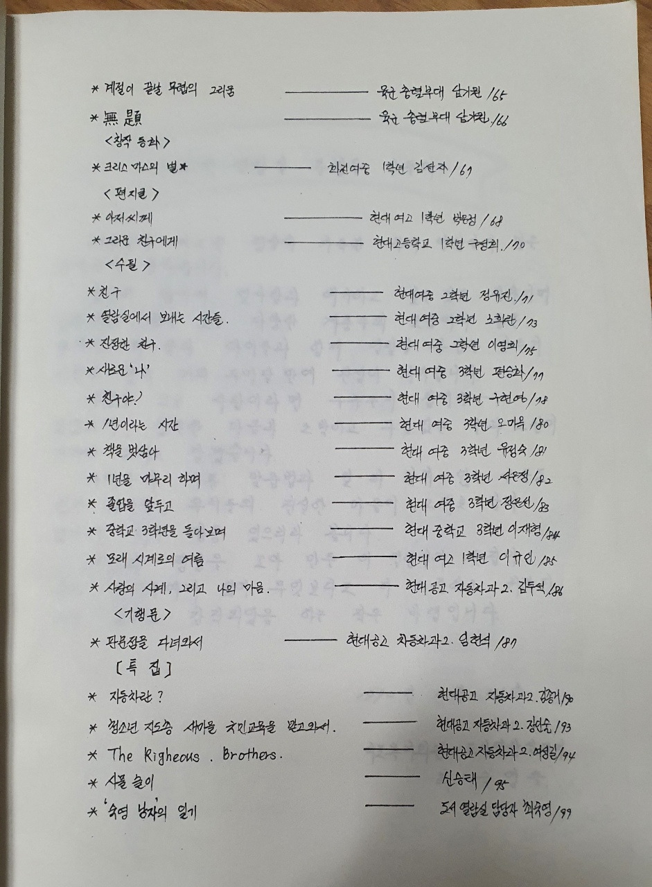 표지그림을 담당했던 여중 1학년 현영인 지금 화가가 되지 않았을까. 스으쓱 정말 잘 그렸던 친구.