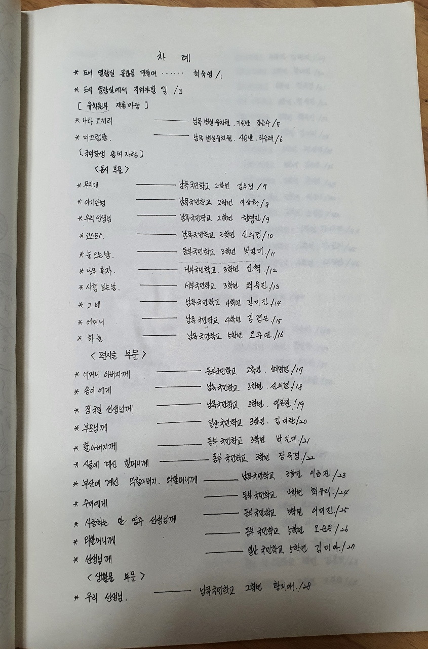 [아그들의 열린마음]이란 제목을 달아 문집을 만들었더랬다.