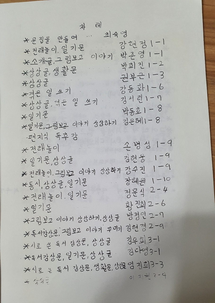 그 후, 결혼하고 아이를 낳은 후엔 초등학교 방과 후 글쓰기반을 맡으면서 아이들과 문집을 만들곤 했다. 역시 아이들이 손으로 그린 그림과 삐뚤빼뚤 쓴 글씨를 그대로 담아서 엮은 것.