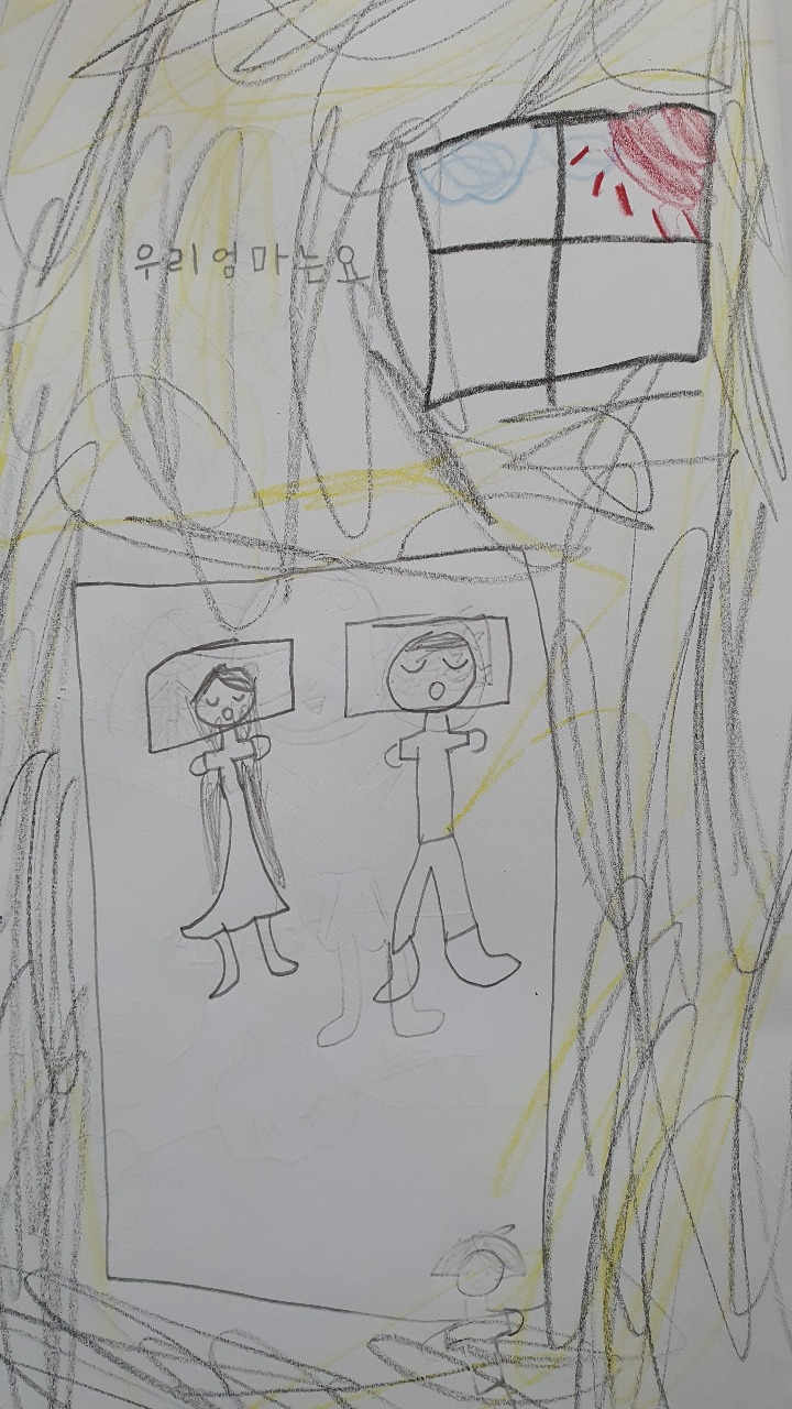 분위기 있는 명상음악과 함께 교실 바닥에 편안히 눕게 하였다. 개구쟁이 녀석들 발장난이 하고 싶고 색다른 분위기에 까르르 깔깔 웃음이 터져 나온다. 둘셋 녀석으로 처음엔 집중하기 힘들다. 그래도 꿋꿋이 눈감고 집중하는 아이들로 인해 겨우 분위기를 다잡고 아침에 만났던 엄마를 떠올려 보는.