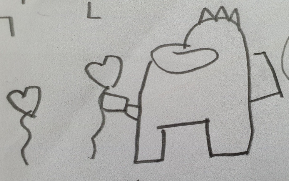 어몽 어스의 등장인으로 외계인과 우주인을 마주한 듯 이목구비가 드러나지 않는다. 하트도 전달하는 심장을 가진 듯하다.