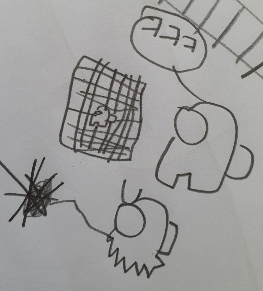 다른 사람 다른 종족을 만난 것처럼 낯설다. 여자, 남자 그림 그리기에선 구분이 나누어지지 않는다. 두 쪽다 엇비슷하게 그리는 걸 주로 한다는 말이다. 그림 속에 등장하는 건 주로 어몽 어스, 자기 가진 힘보다 훨씬 더 큰 힘을 가진, 아이템이 많을수록 세진다고 생각하고 열심히 그려댄다.