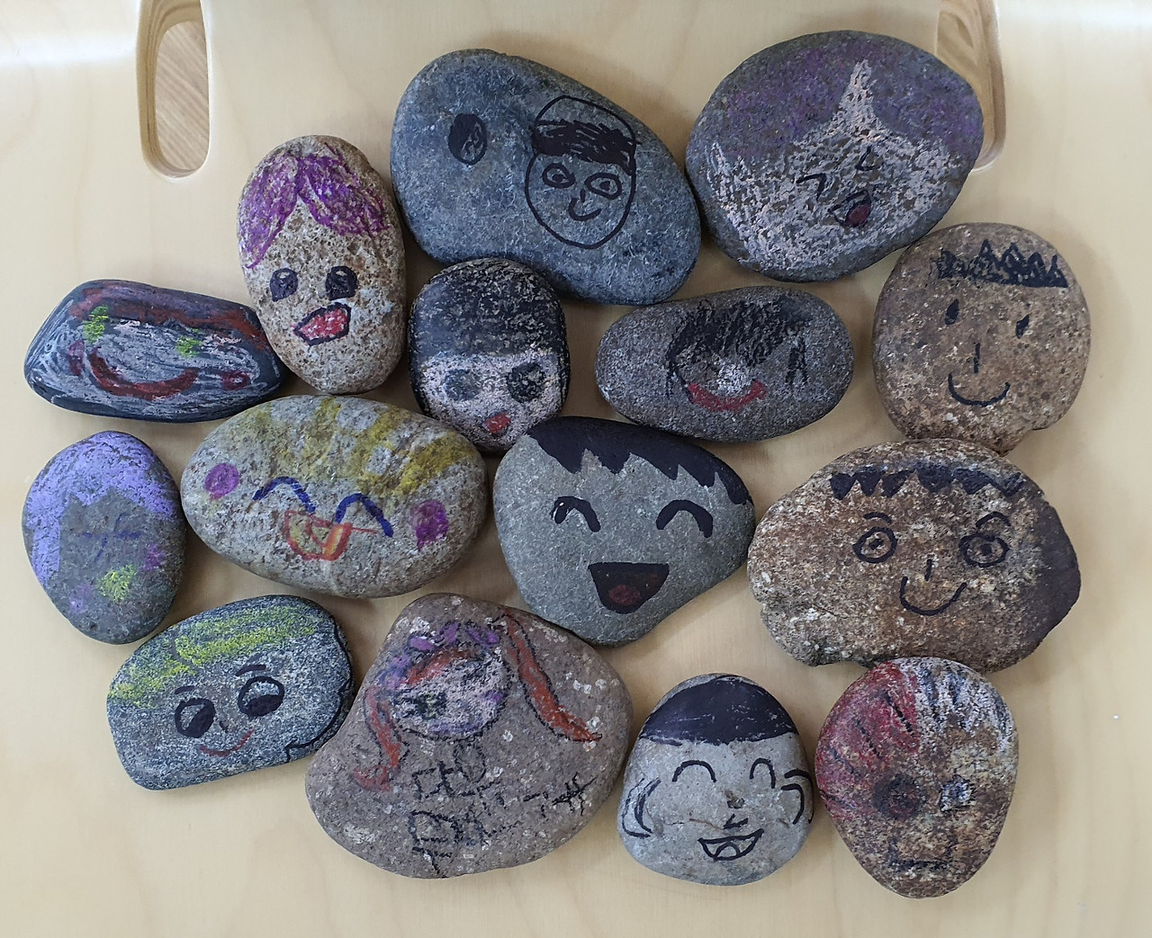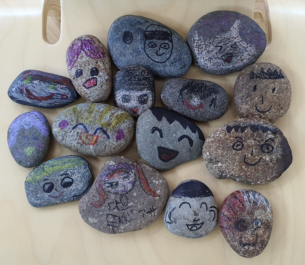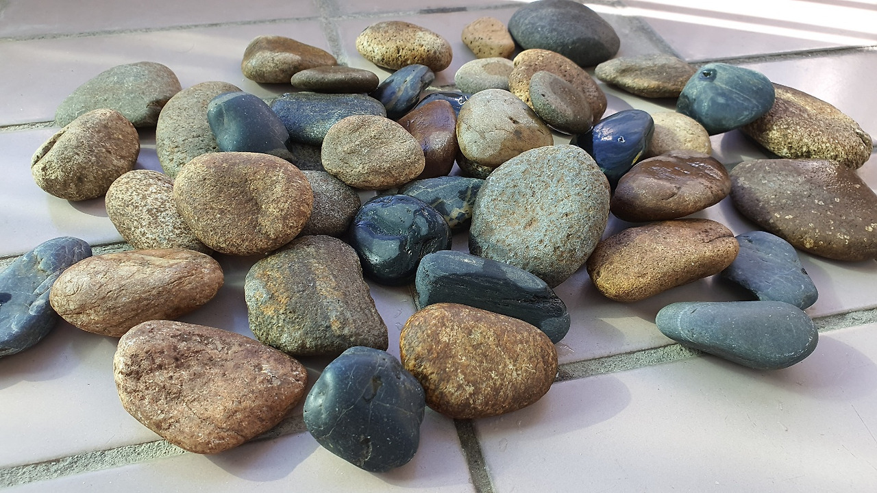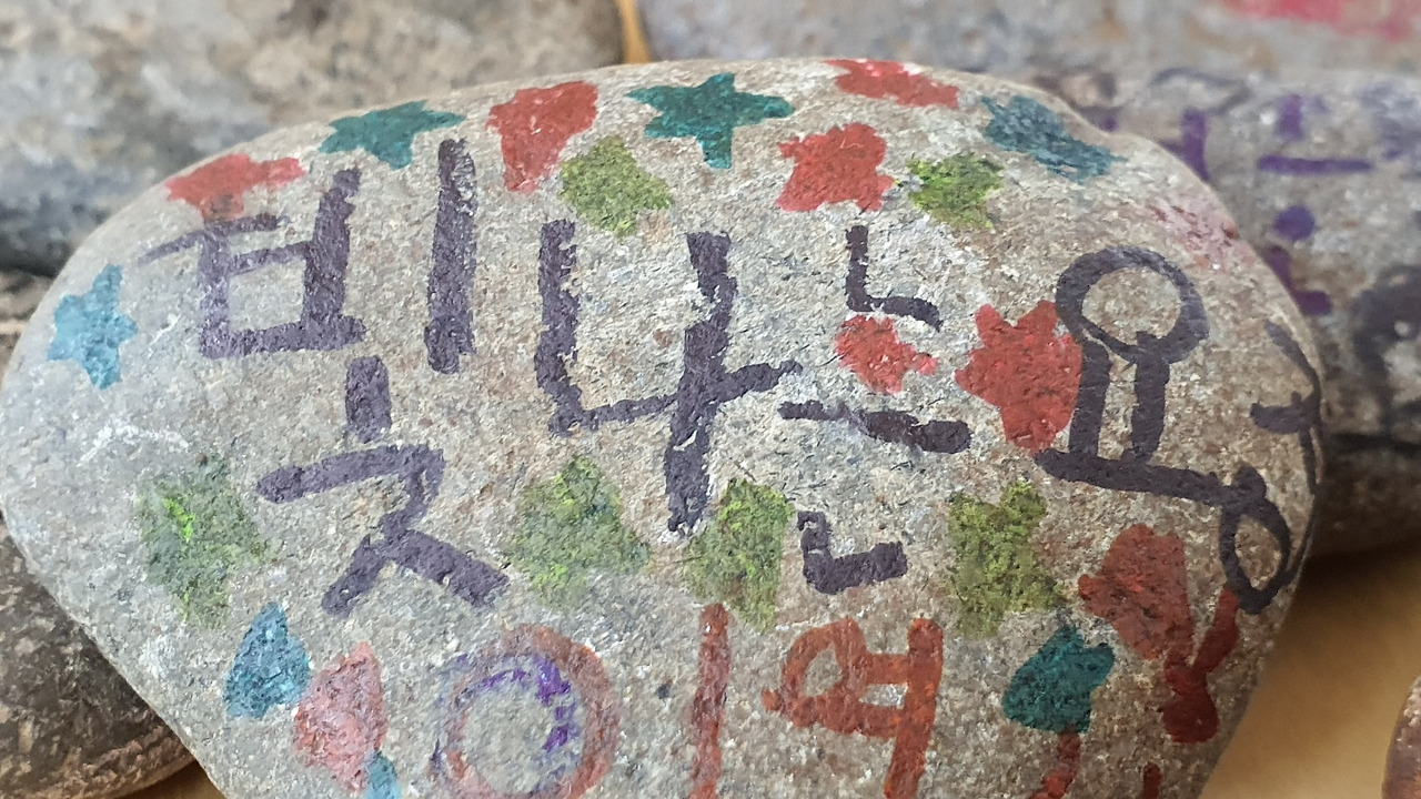 작은 돌멩이에게 생명 있는 아이처럼 대하는 아이들의 맘을 고스란히 되돌려 주고 싶었다. 그런 생각으로 40개가 넘는 돌멩이를 주으러 다녔다. 꽤나 무거운 걸 들고 온 첫날은 따닝이 물어봤던 거였고, 이튿날은 재택 중인 그이가 말했다.