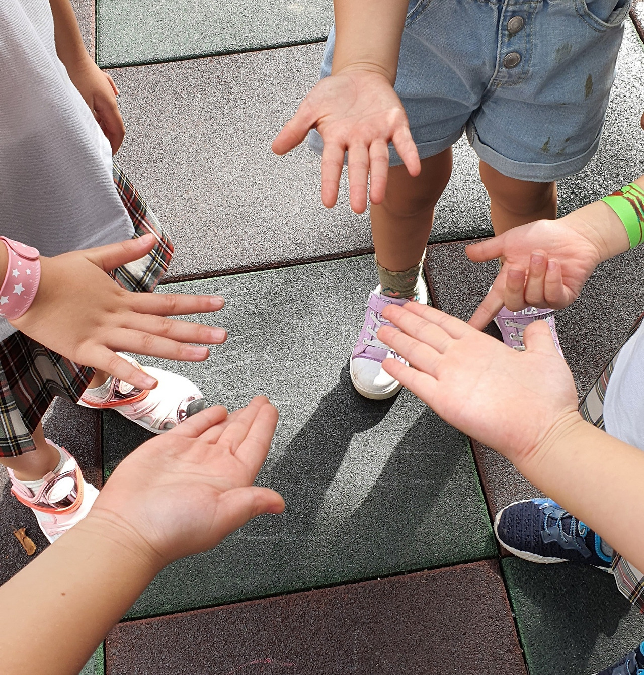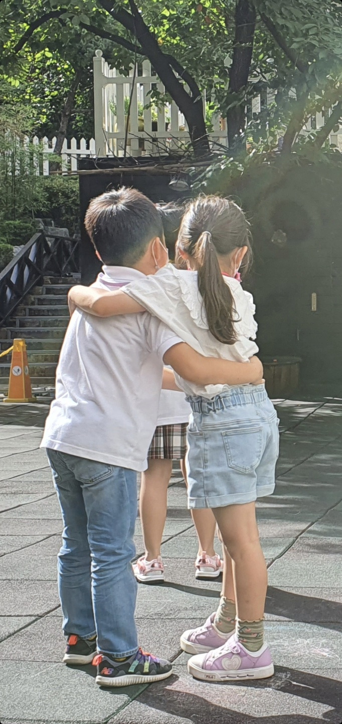 아이들은 얼음땡 놀이와 무궁화 꽃이 피었습니다를 하며 뛰어다녔다. 땀이 나올 만큼 뛰다 힘든 친구들은 하나 둘 쪼그리고 앉아 놀았다. 즐겁고 신난 놀이를 마치고 들어가기 위해 줄지어 섰다.