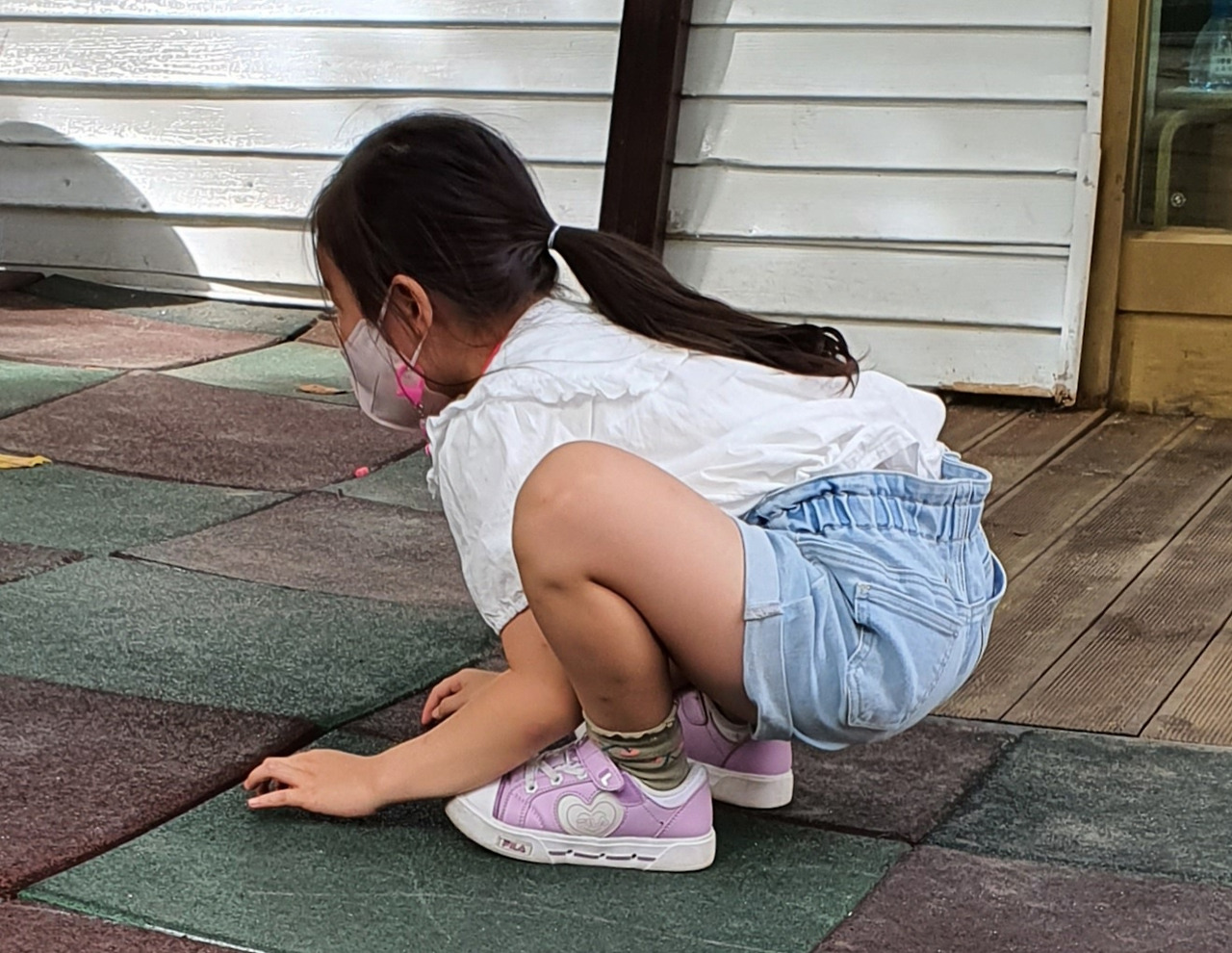 반들반들한 돌멩이를 무겁게 주워와 깨끗이 씻으러 놓은 건 불쑥 떠오르던 얼마 전 일이 생각 나서다. 유치원 주변 세 곳의 야외 놀이 공간. 아파트 주민들과 함께 사용할 수 있는 대형 놀이터, 앞뜰의 정원 놀이터, 또 한 곳이 넓은 마당이 있는 대운동장이다.