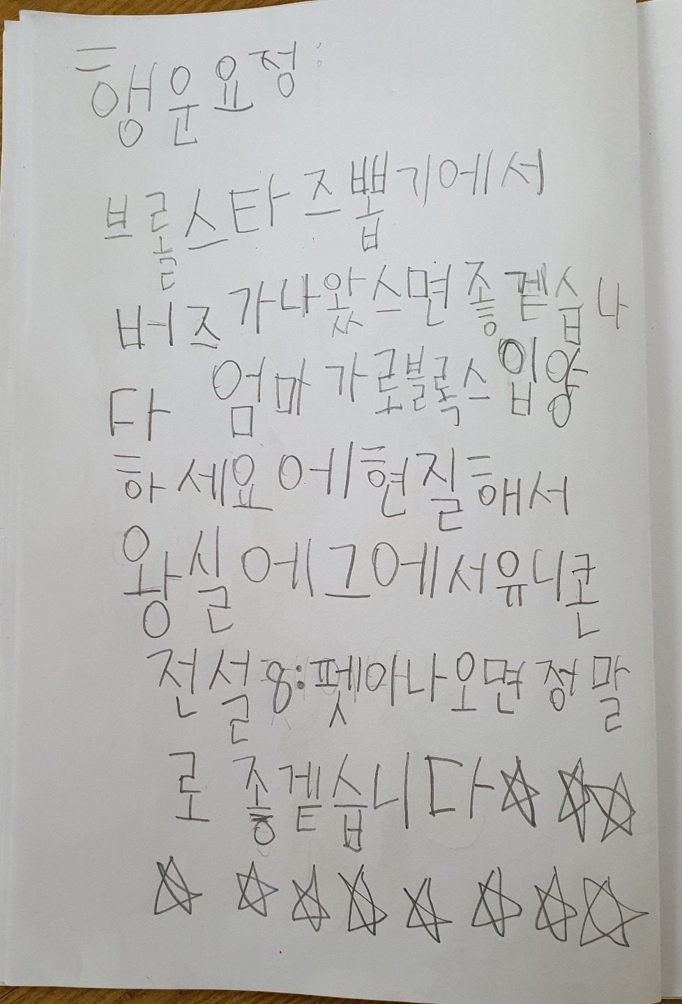 유치원 끝나고 집에 가면 공부 좀 그만 시키고, 게임 좀 하게 해 달라는 소원, 코로나가 빨리 끝나서 아빠랑 엄마랑 놀이동산에 가고 싶다는 소원도 많았다. 내일 15명은 또 무슨 소원을 말할지.