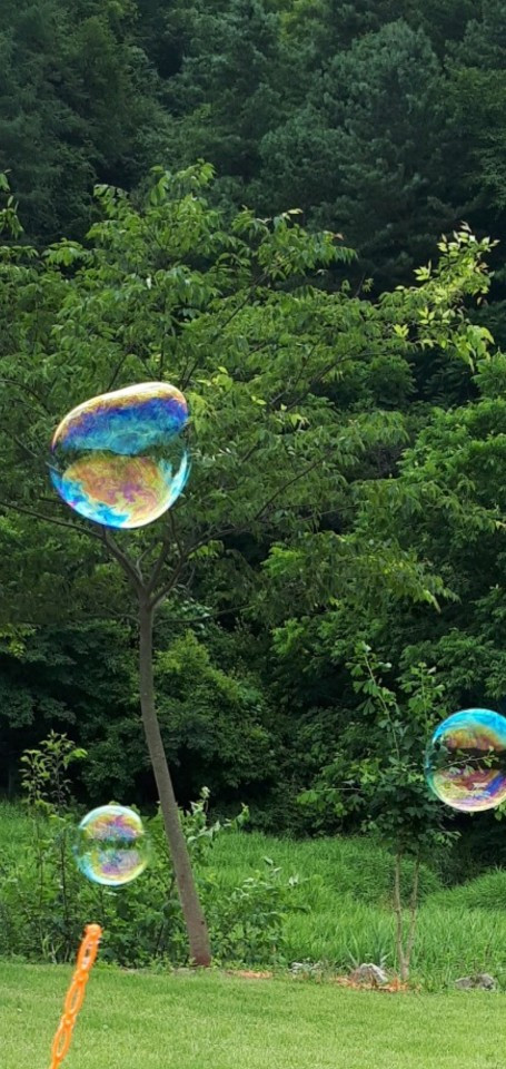 노래를 가르쳐 주고 같이 불러보았다. 비눗방울을 하나씩 들고 4층 옥상에 모였다. 무지갯빛 동글이를 타고 하늘로 날아오르고 싶은 또롱또롱한 저 눈망울들 나는 봐도 봐도 늘 좋다.