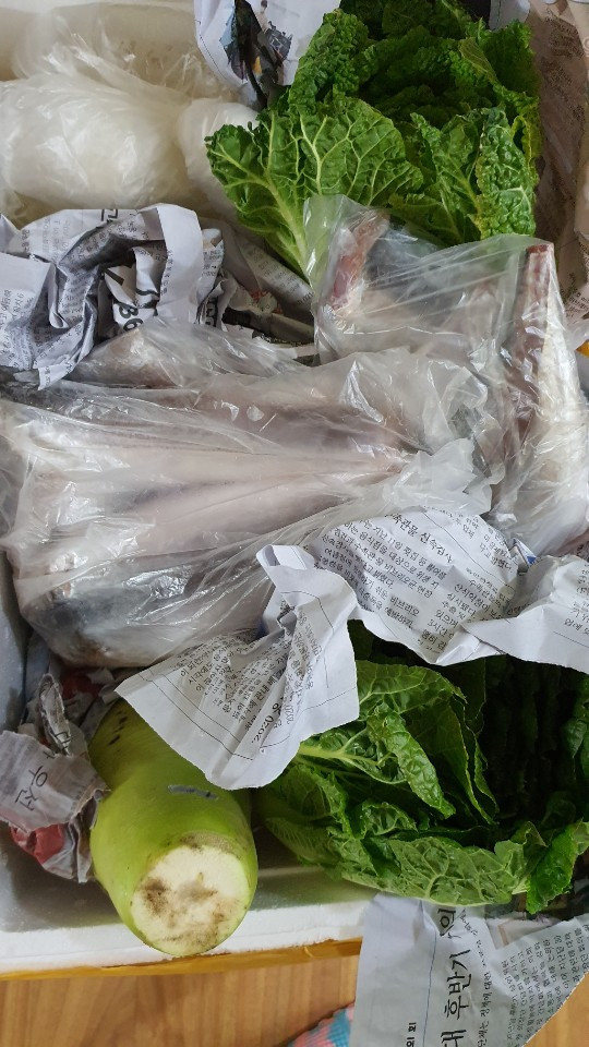 김장해 주신지 며칠 됐다고 오늘 저녁 퇴근해 오니 택배 상자 속에 조기, 갈치, 삼치, 무, 배추, 동치미랑 같이 김영순 여사님의 맘을 꽉 채워 보내셨다.