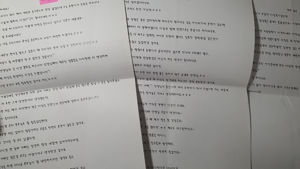 집으로 돌아와선 결과가 나올 때까지 자가 격리에 들어가야 했다. 그동안 밖에 나가 일한다는 이유로 집 안을 참 엉망진창 하고 산 게 눈에 들어왔다. 잠시 멈추면 비로소 보인다더니 정말 그랬다. 혹시 뒷일을 모르니 서랍부터 정리하기로 했다. 잔뜩 들어가 문도 안 열리는 걸 다 끄집어냈다. 정리할 물건들보다 그 속에 적힌 메모나 오래전 학부모님께 받은 편지 등등...